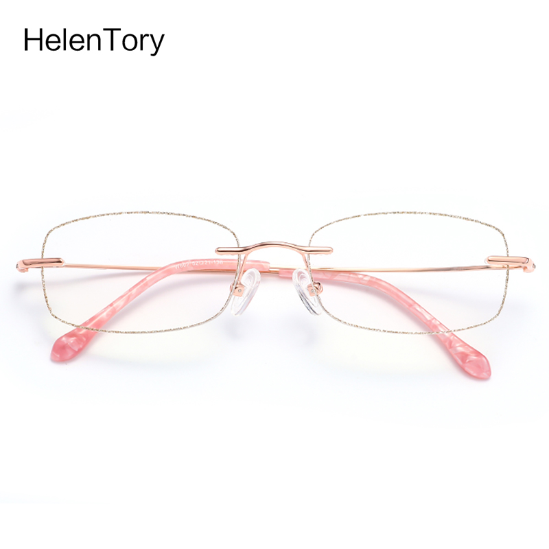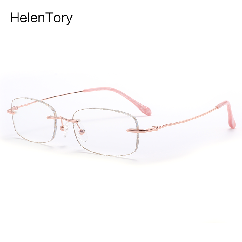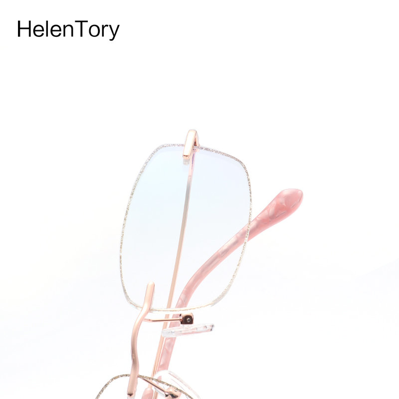 HelenTory无框镶粉舒适近视眼镜架女休闲韩版瘦脸美妆可配有度数