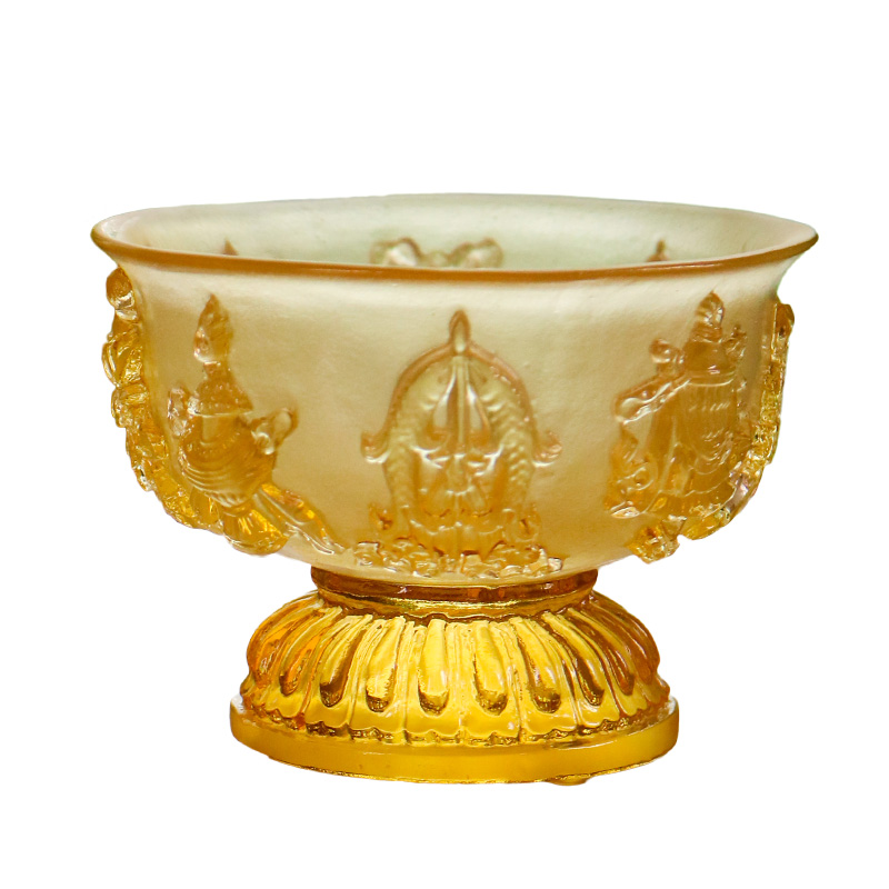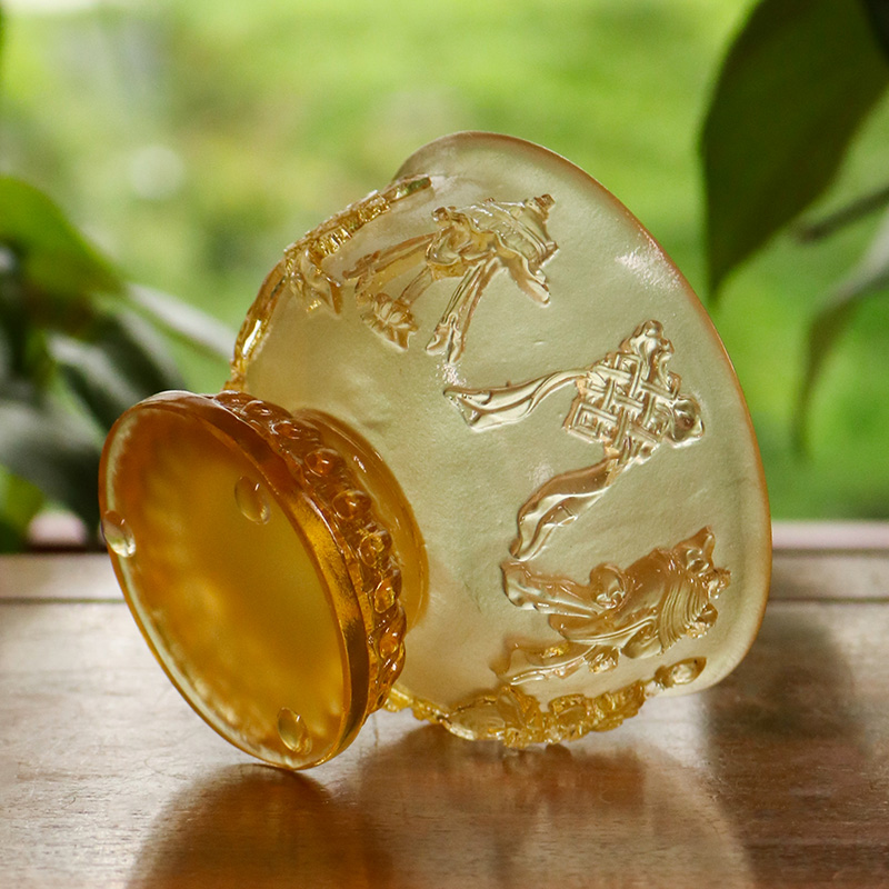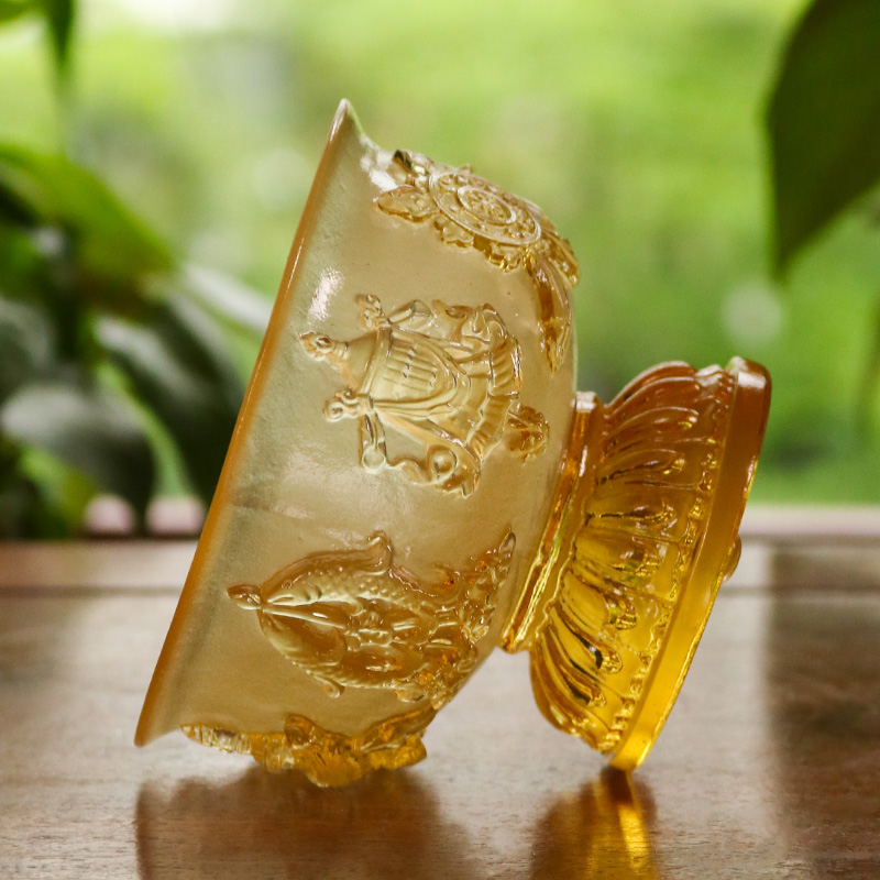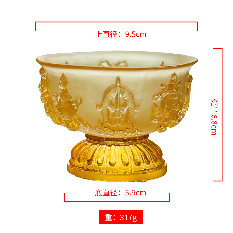禅悦佛艺纯手工古法琉璃八吉祥佛供杯贡碗贡水杯佛堂供具居家摆件