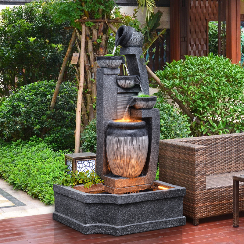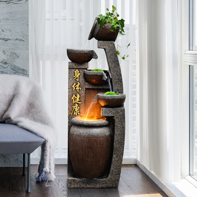 现代简欧假山喷泉流水摆件客厅生财循环水景观家居办公室玄关落地