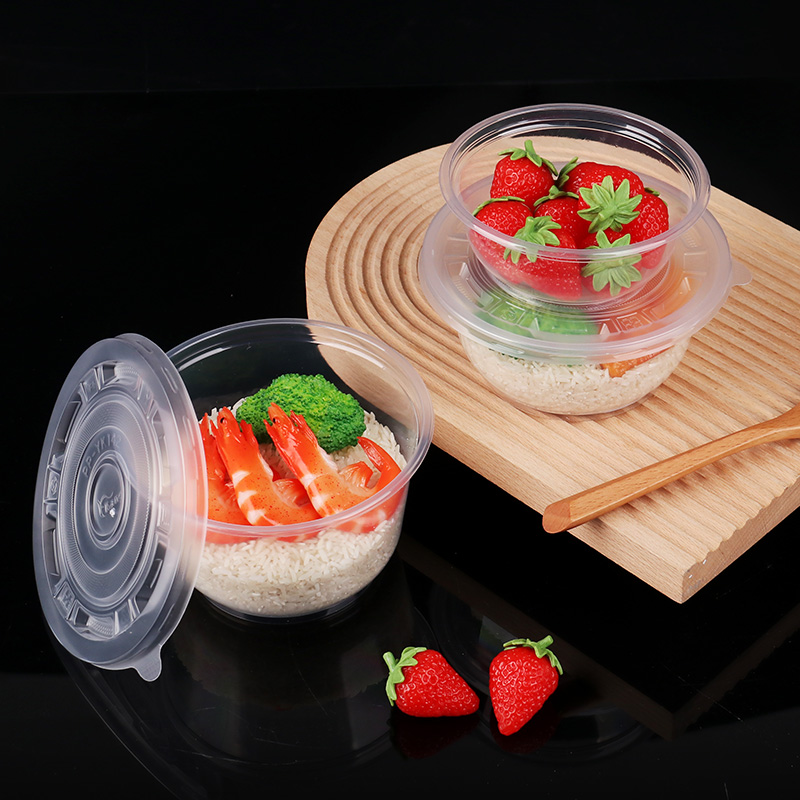 一次性碗带盖塑料圆形汤碗麻辣烫加厚打包盒甜品冰粉透明外卖餐盒