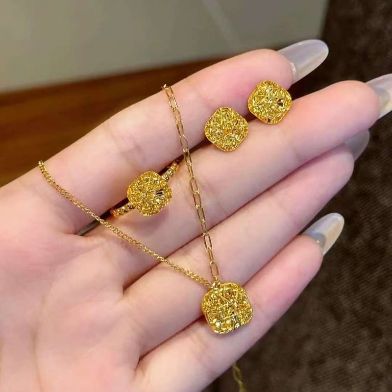 金包银拉a丝小方糖戒指女爆闪花丝素圈镂空指环对戒送女友节日礼