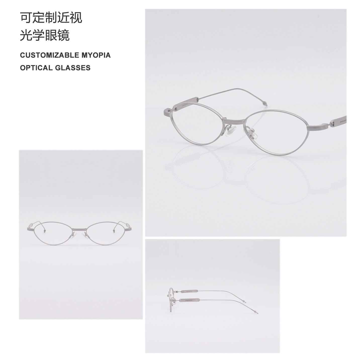 2025新品GM联名款眼镜架银色椭圆猫眼超轻纯钛素颜平光镜女MM216