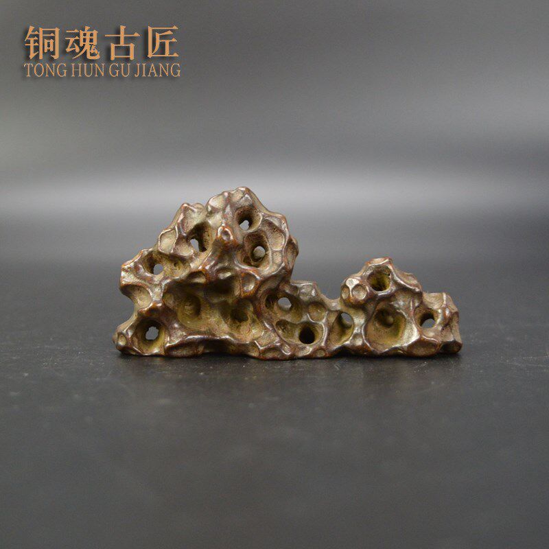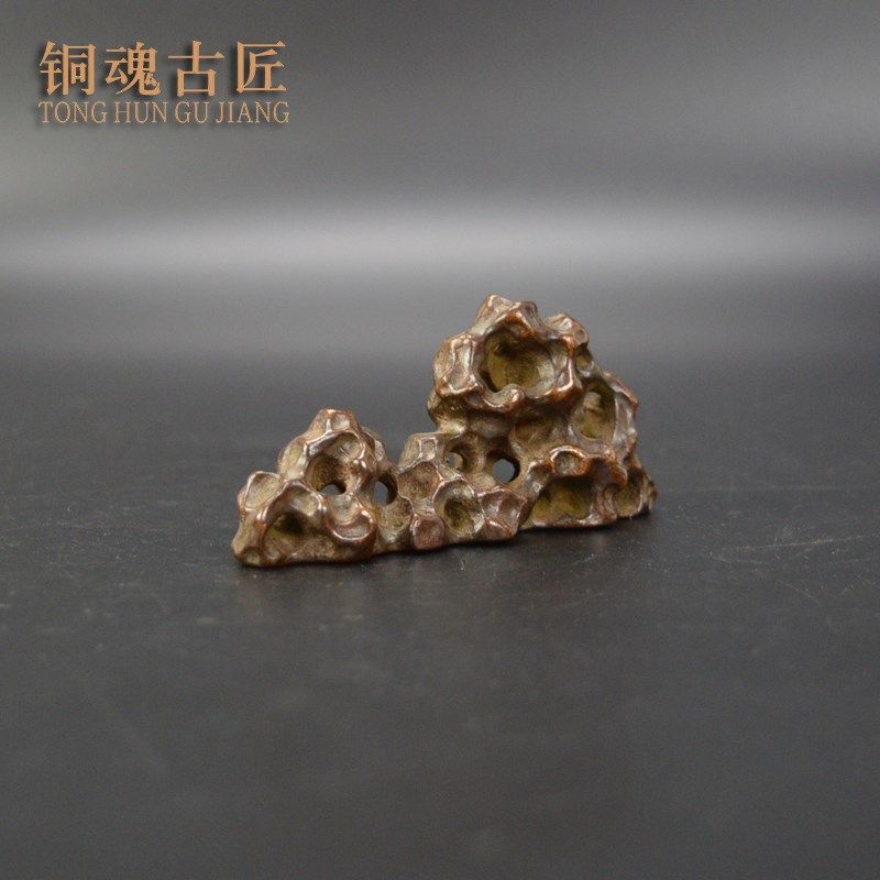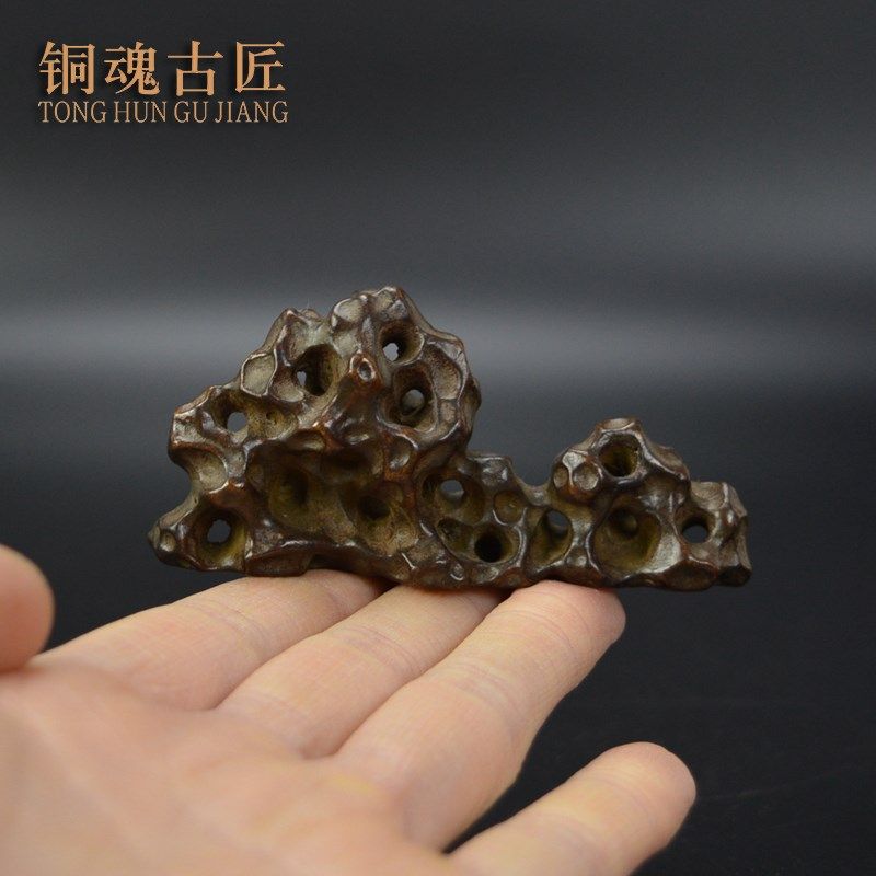 黄铜实心复古包浆太湖石山笔架山子文房 搁笔架茶室摆件书法收藏