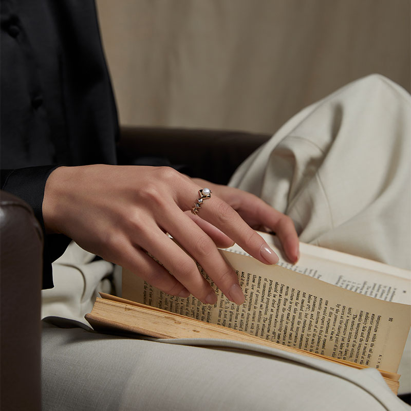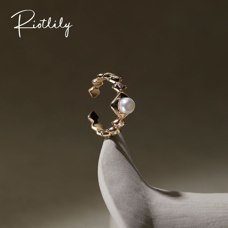 Riotlily/艾特里里巴洛克系列戒指珍珠几何开口戒中秋礼物