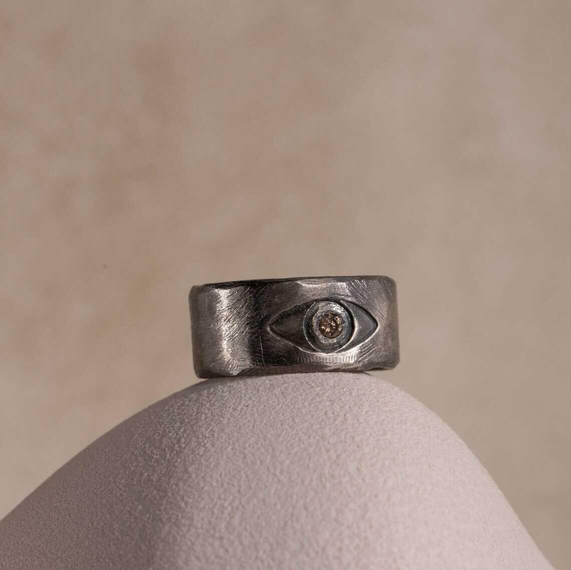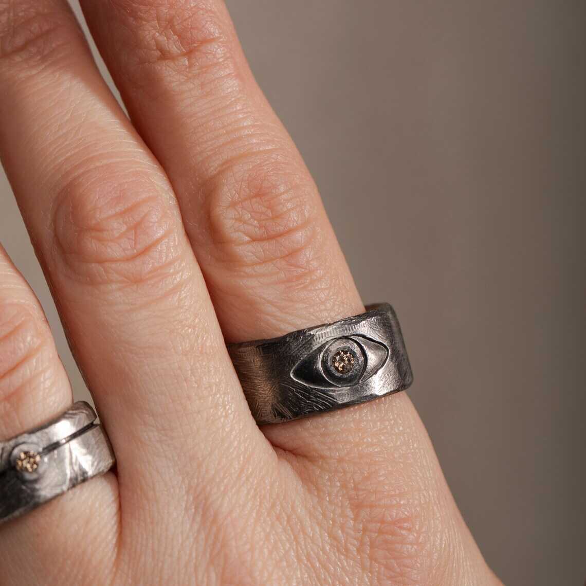 纯银戒指独眼特质霸气开口食指单身戒个性指环欧美男复古轻奢定制