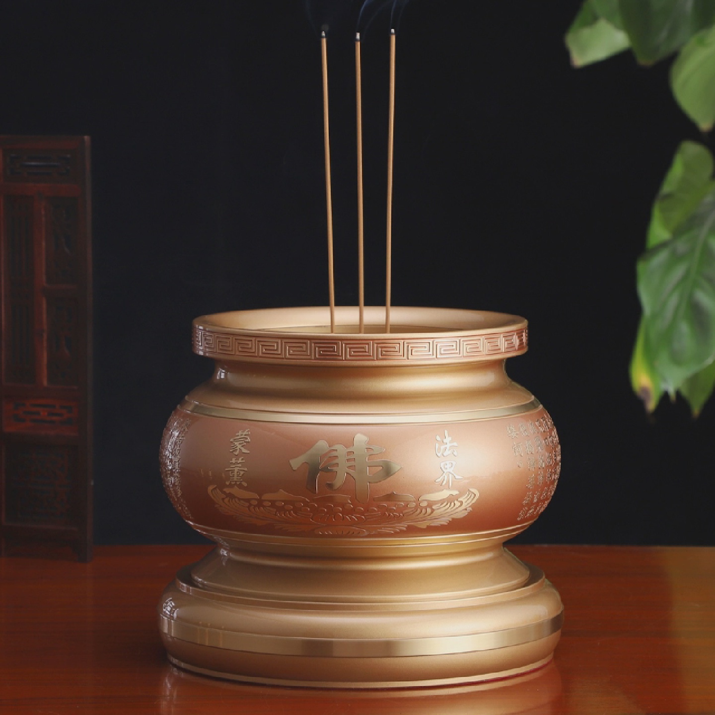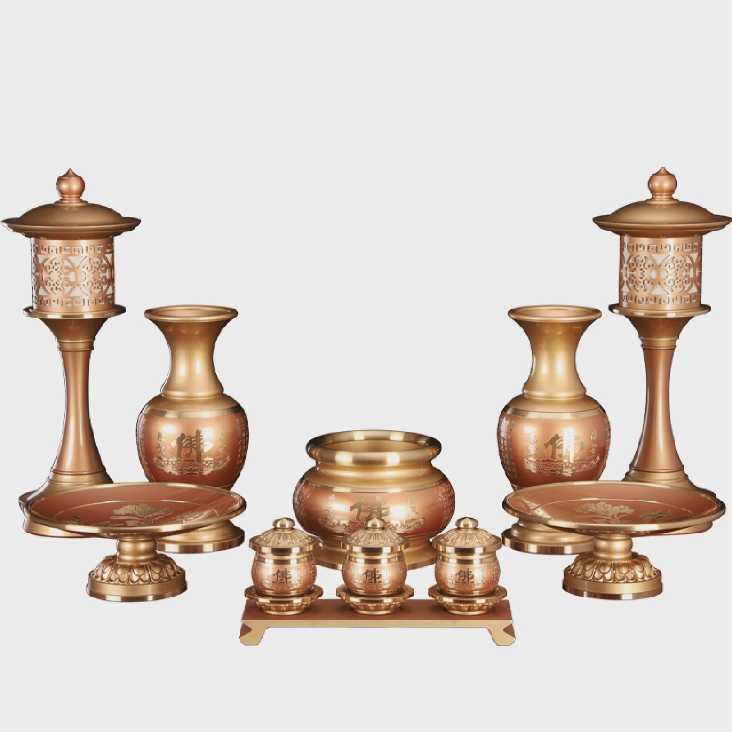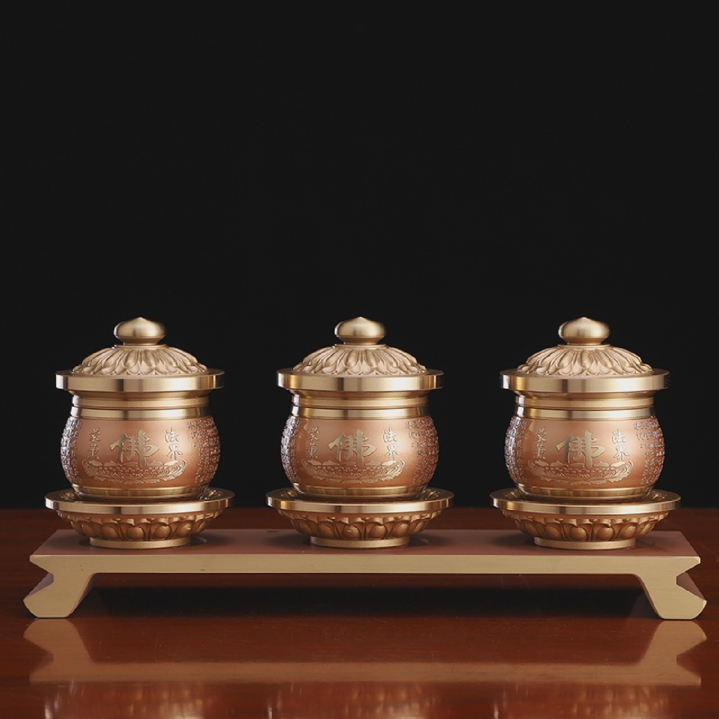 佛前佛具用品大全摆件心经香炉供杯莲花果盘中式纯铜供具套装家用
