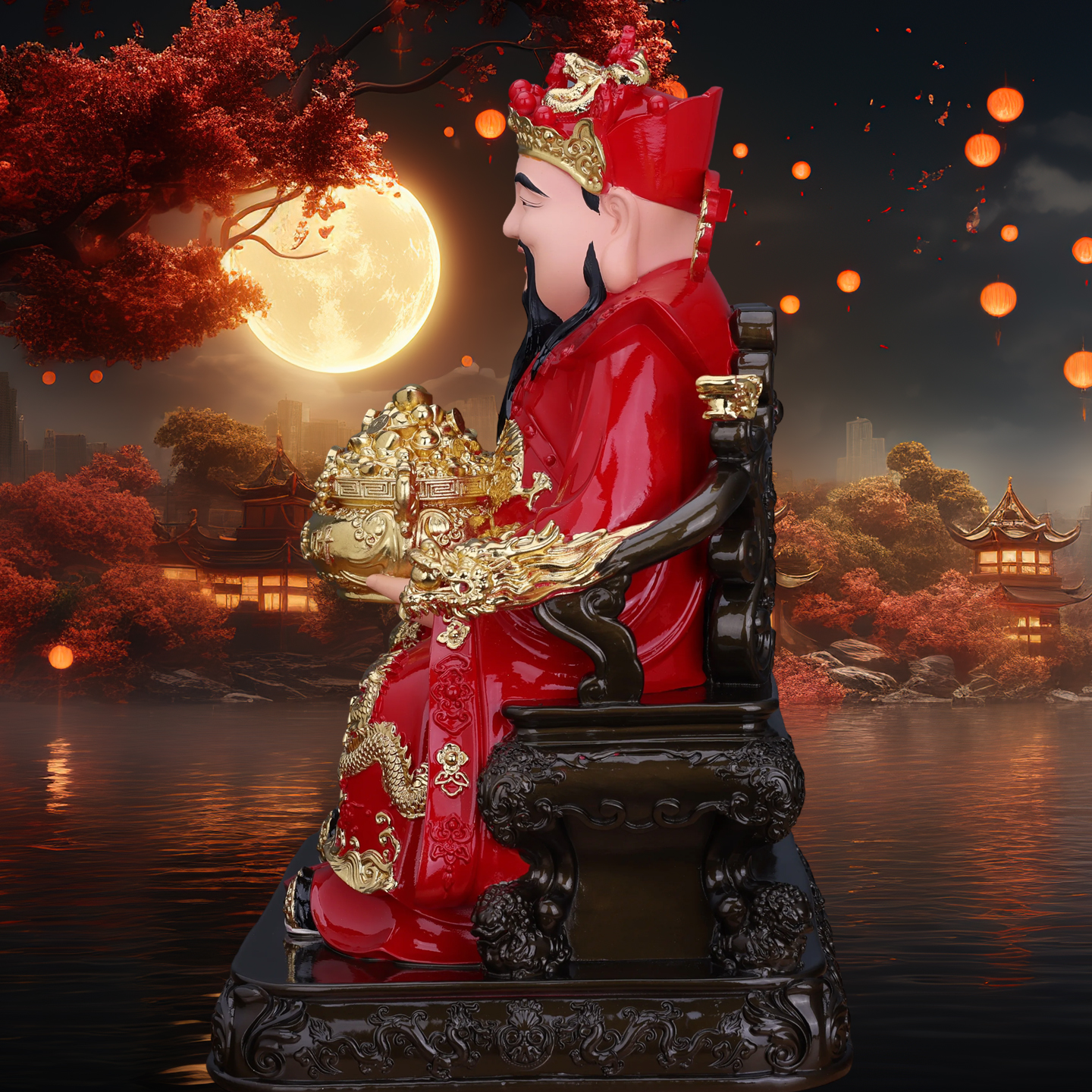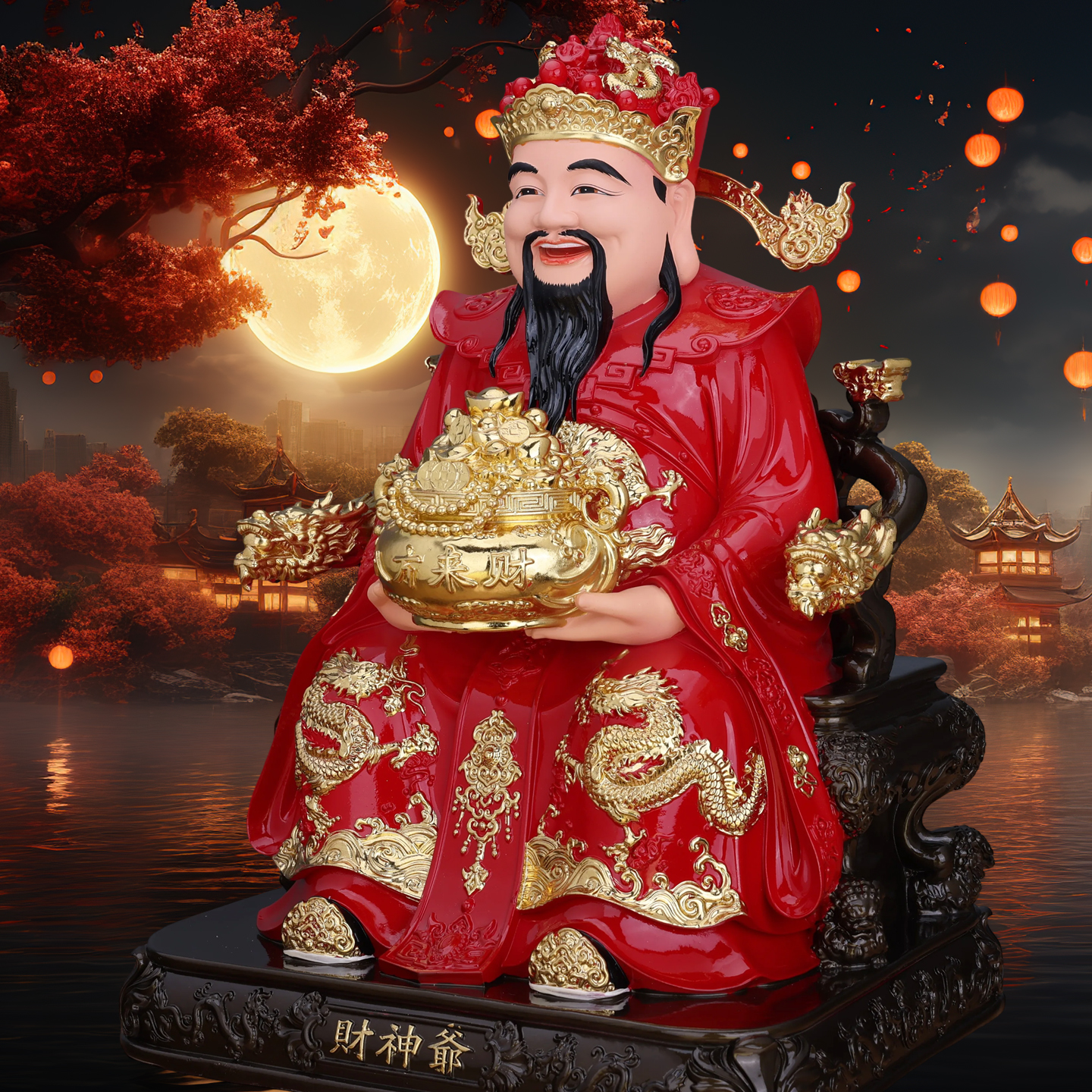 财神爷树脂摆件家用供奉招财范蠡装饰品客厅玄关文财神神像红色