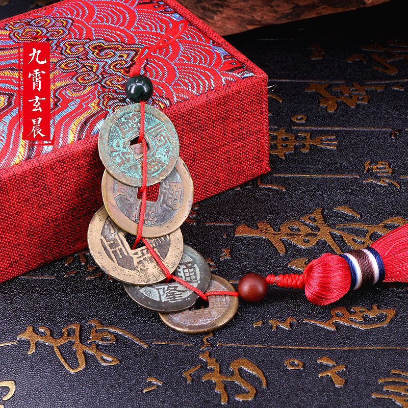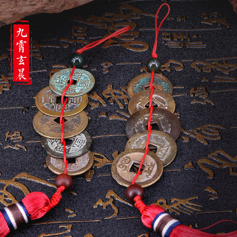 五帝钱真品压门槛石装修过门石铜钱门对门挂件六帝钱随身携带