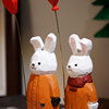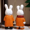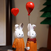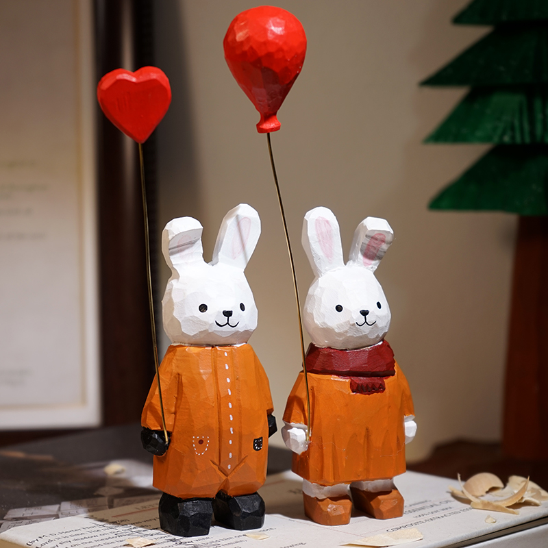 小兔举爱心气球手工木雕小摆件可爱卡通办公室桌面装饰品女生礼物