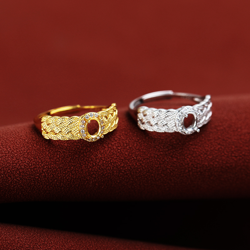 新款S925纯银戒指空托女款爪子DIY镶嵌水晶红宝石戒面开口戒托3*4