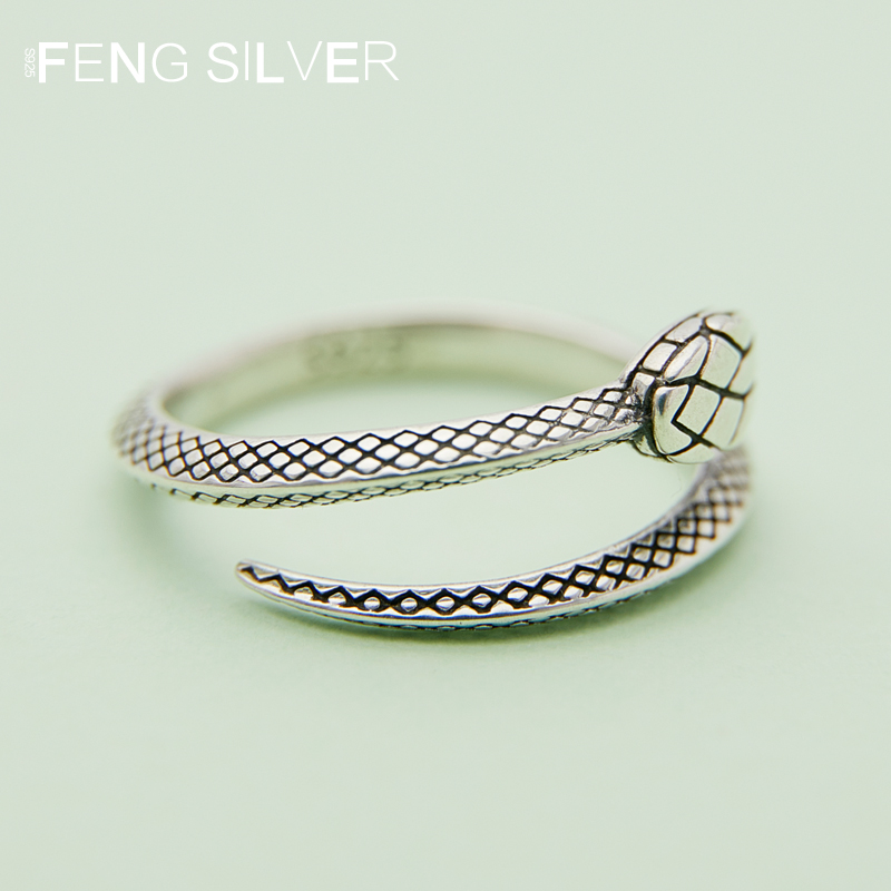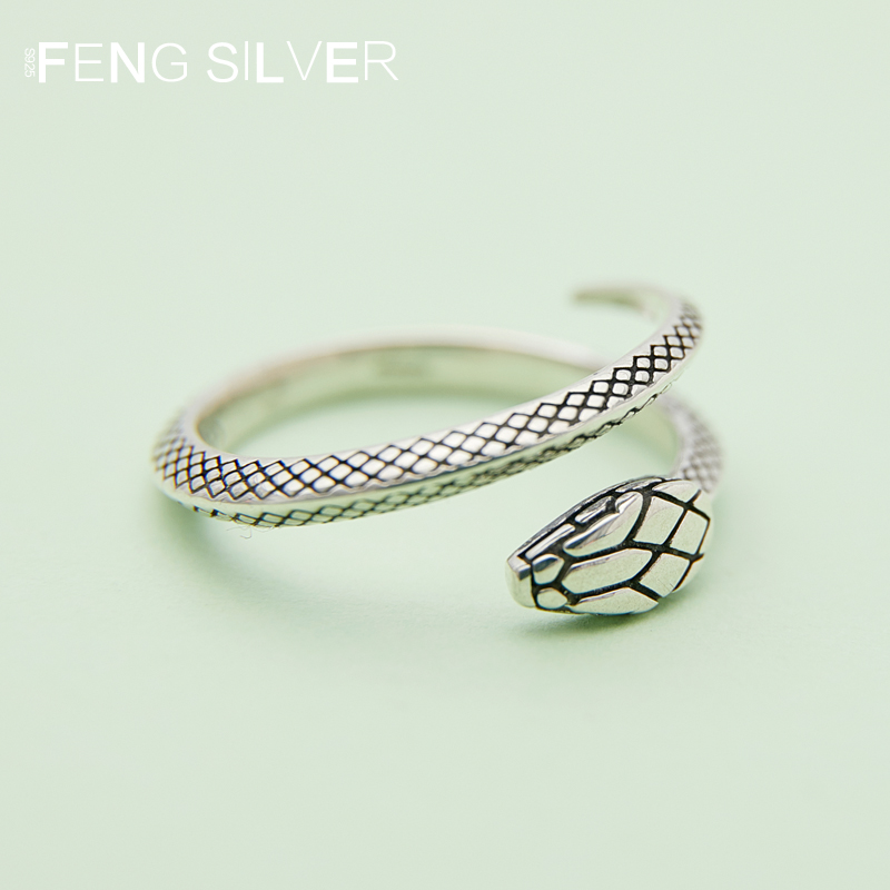 男款蛇形戒指s925纯银本年命生肖蛇型创意食指大码女戒开口戒刻字