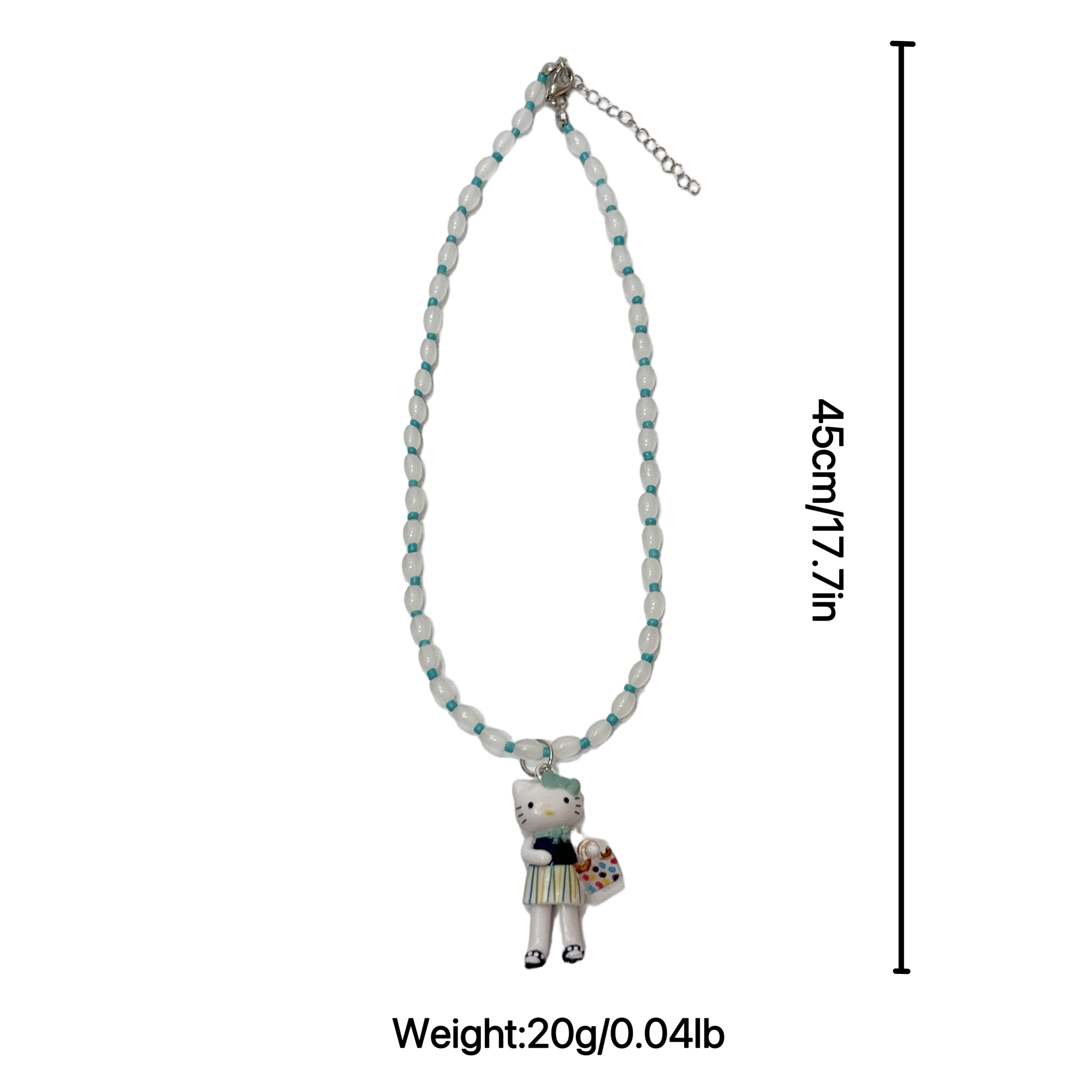新款高级感可爱卡通KT猫咪串珠项链甜美个性女锁骨链颈链串珠配饰