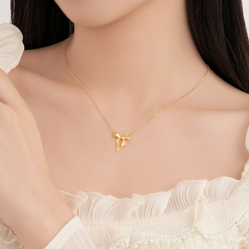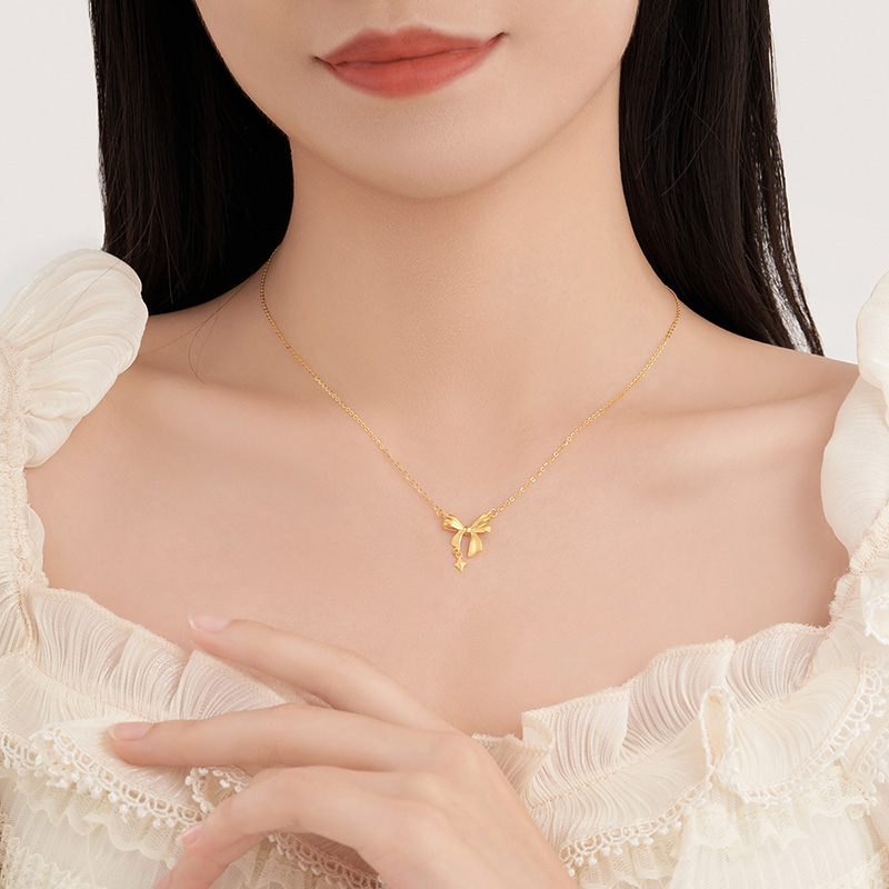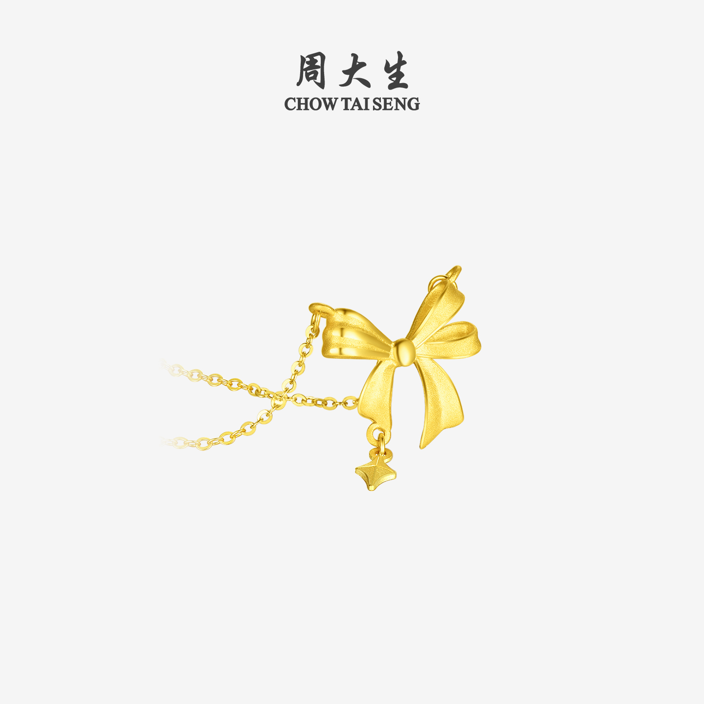 周大生在逃公主黄金项链女足金星芒蝴蝶结套链吊坠锁骨链送女友礼