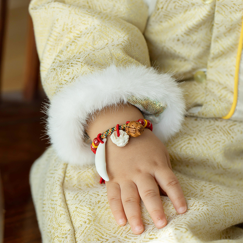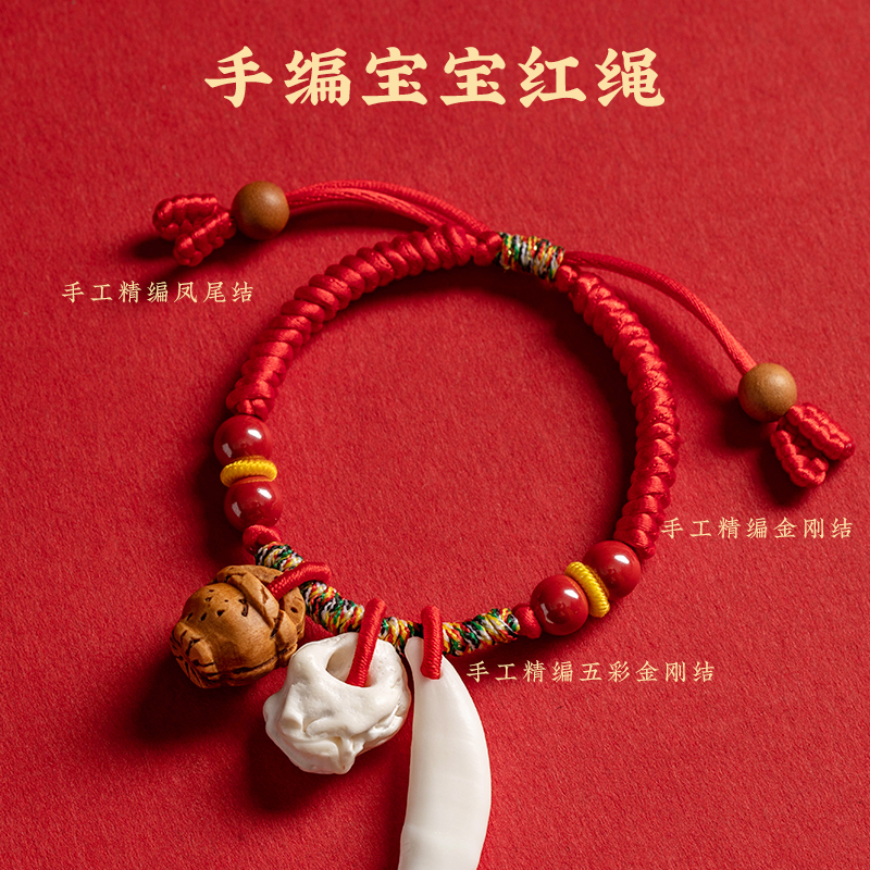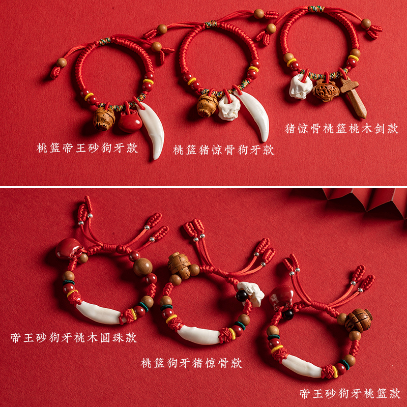婴儿红绳手链宝宝朱砂女猪精骨惊桃木手串手绳狗牙齿儿童压惊挂件