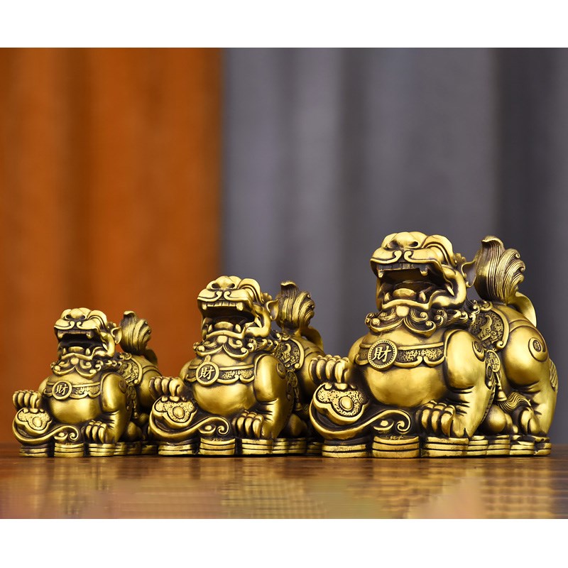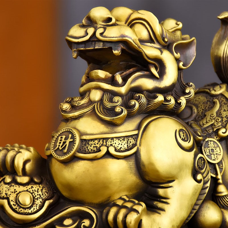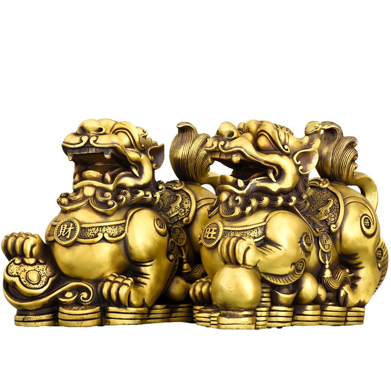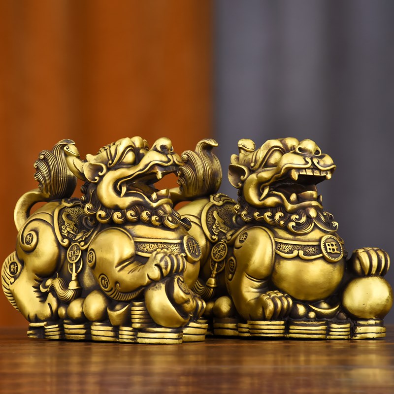 纯黄铜貔貅摆件大小号一对公母家居办公室工艺品店铺开业礼品车载