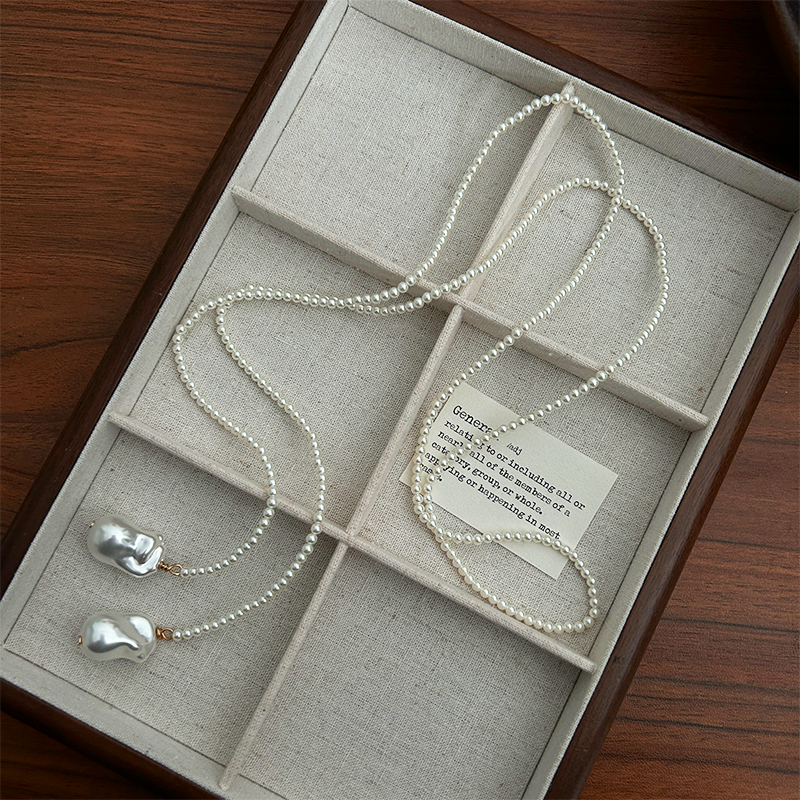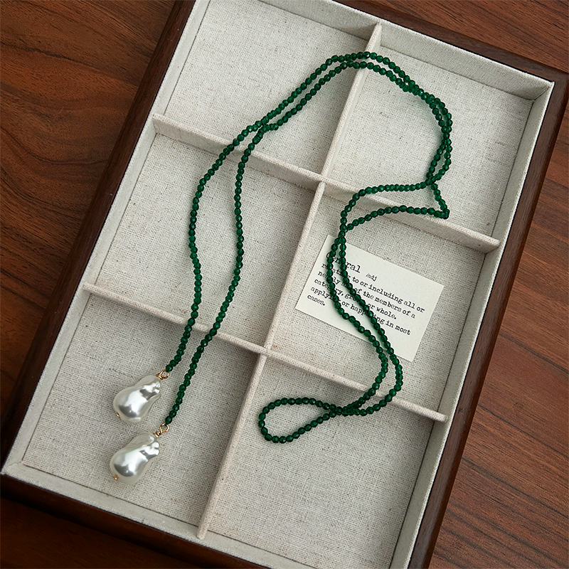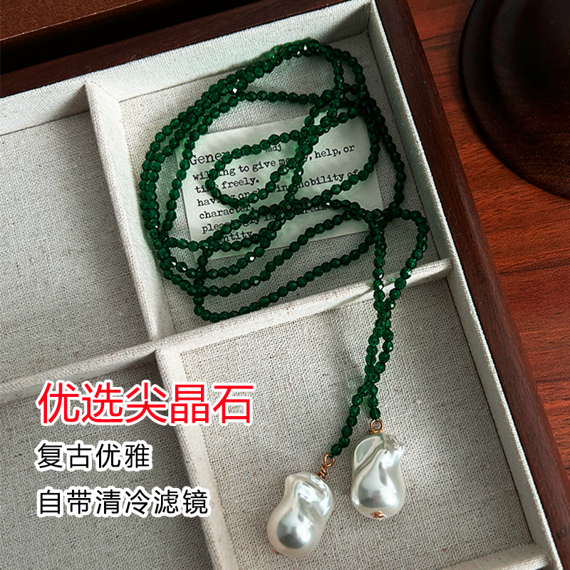 多种戴法不规则巴洛克珍珠长项链珍珠墨绿色串珠复古感气质毛衣链