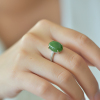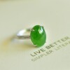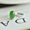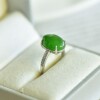 S925银镀18K金镶嵌天然新疆和田玉碧玉蛋面戒指高档时尚指环玉石