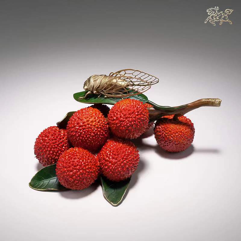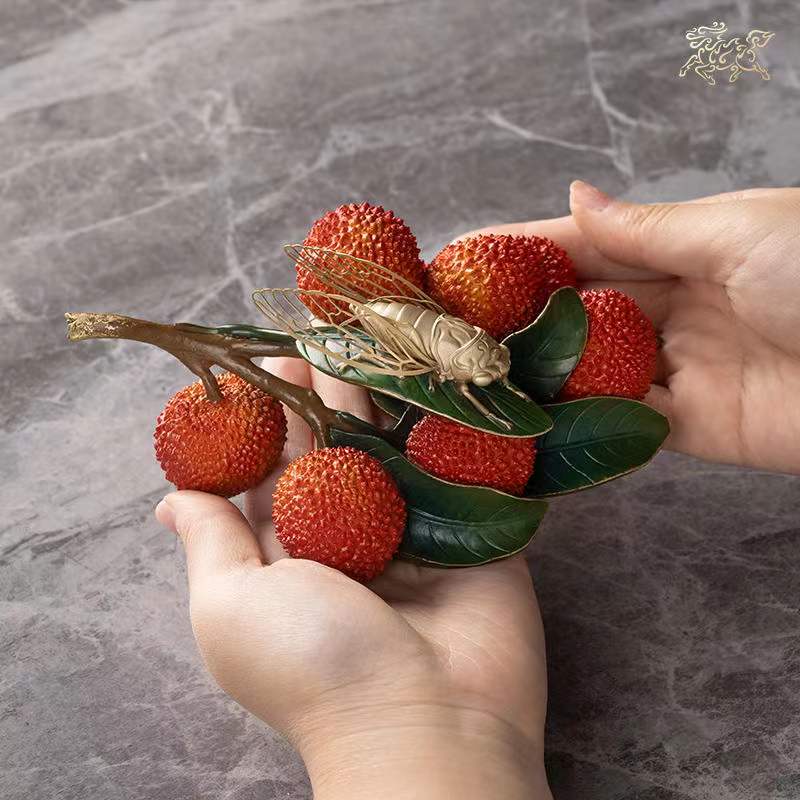 铜师傅名利双收家居客厅办公室桌面装饰品新中式荔枝金蝉黄铜摆件
