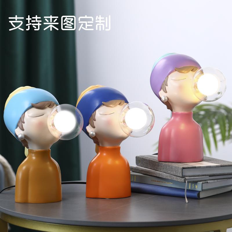 珍珠女孩跨境新品珍居珠脂女孩泡小夜灯树泡工艺品卧室床头家装饰