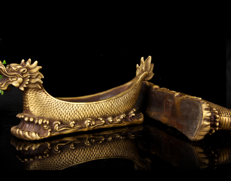 朴器 擦黑色加重加厚铜龙船摆件 铜龙船摆件