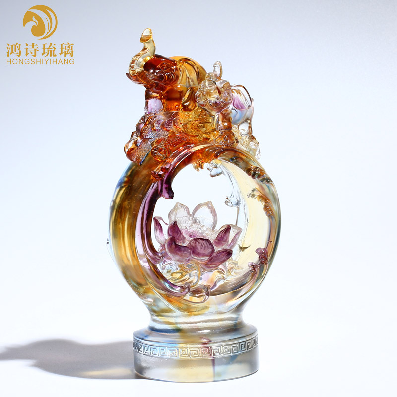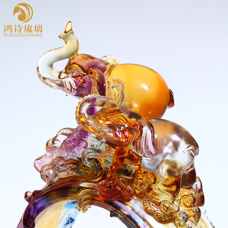 琉璃大象工艺品摆件办公室客厅开业礼品实用大气桌面装饰品送客户