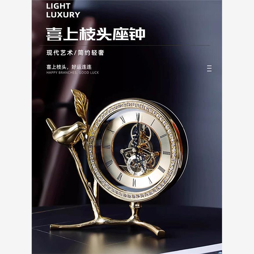 高档轻奢摆件金属座钟现代家居客厅办公室桌面装饰品高级感台式钟