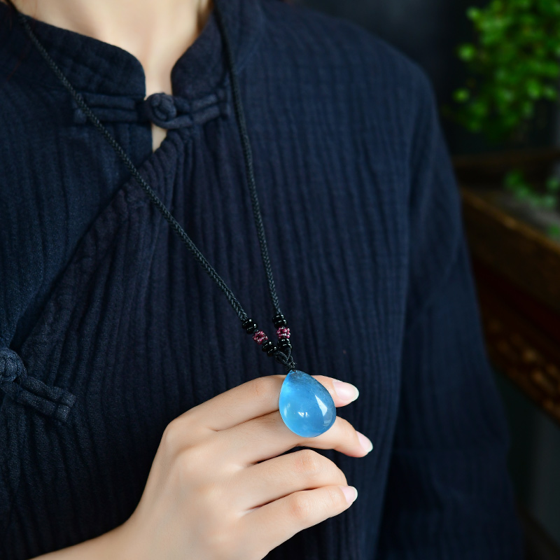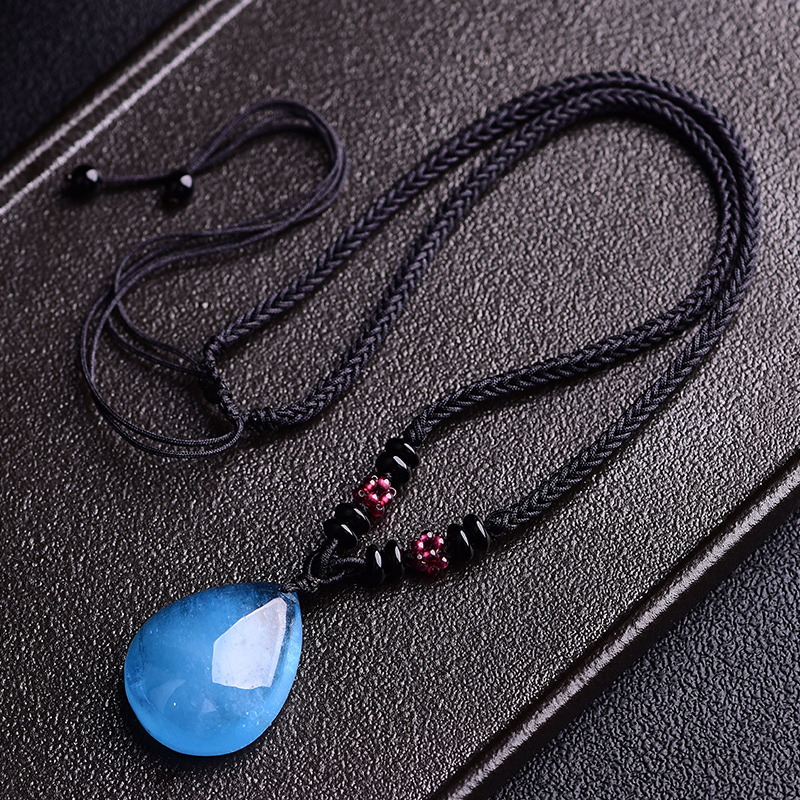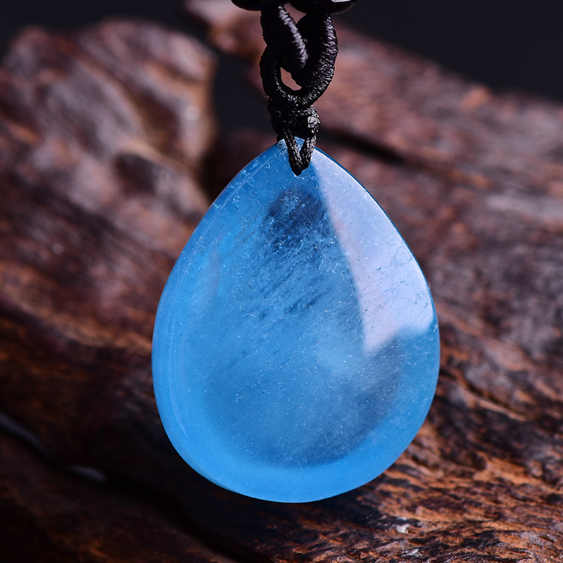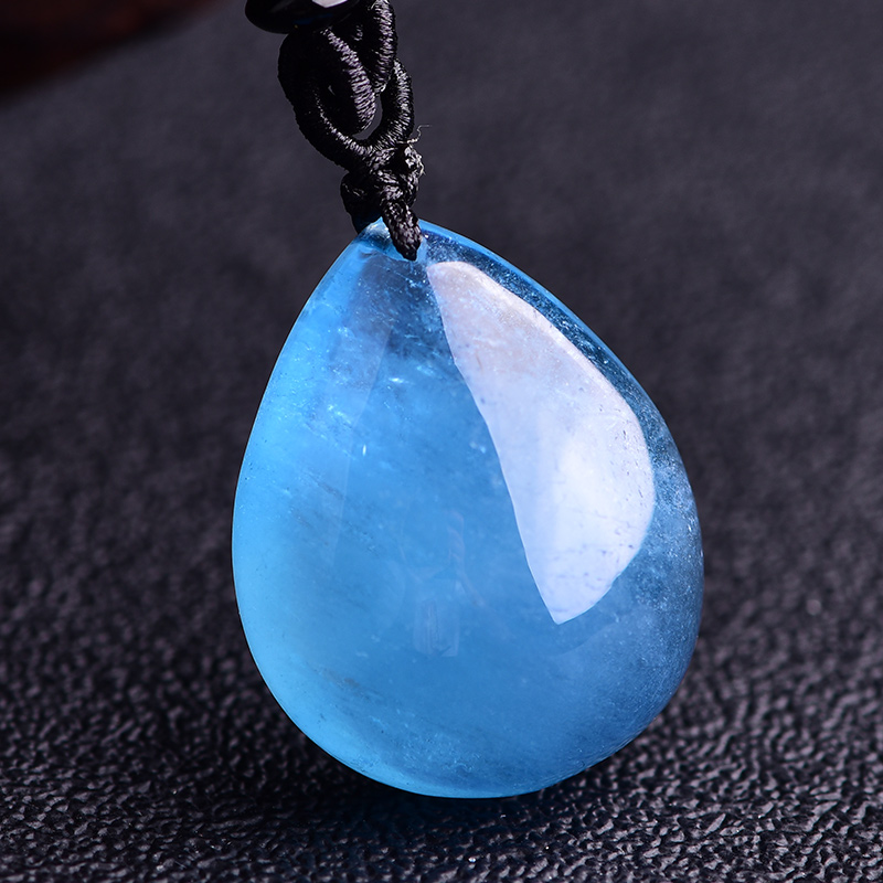 天然海蓝宝吊坠 滴水饰品蓝水晶女挂坠 水滴项链挂件海蓝宝石