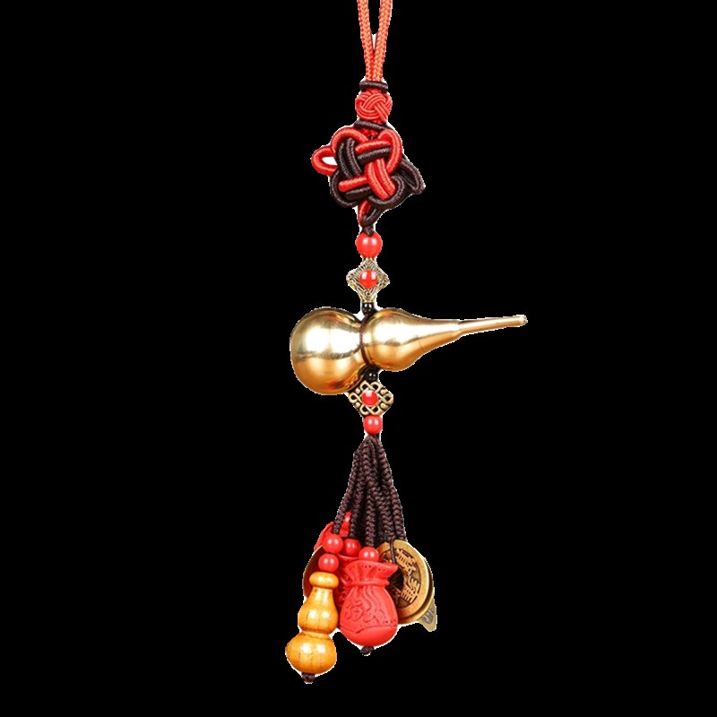 黄铜十全葫芦挂件朱砂小挂件中国结吉祥物家居入户门窗户汽车装饰