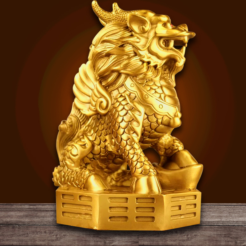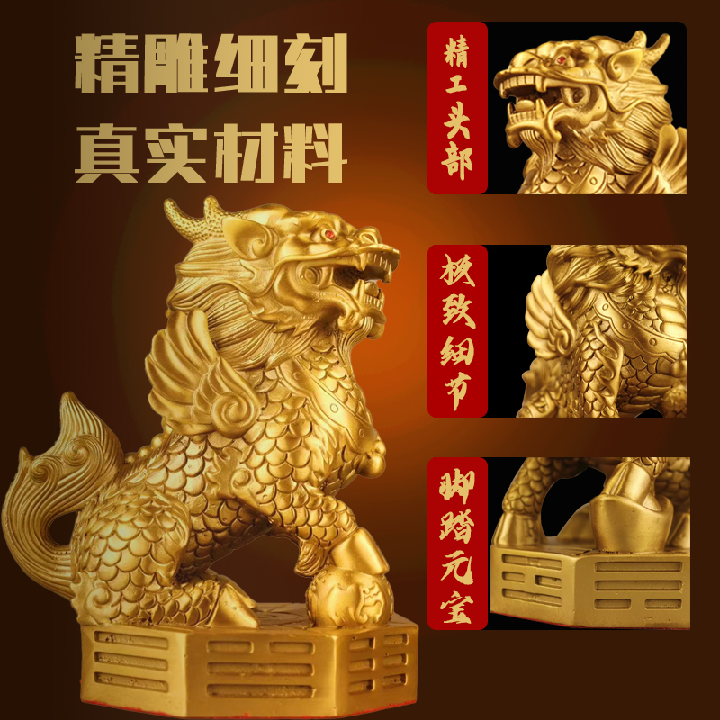 大型黄铜麒麟摆件一对仿古黄铜色麒麟家居客厅公司大厅摆件礼品