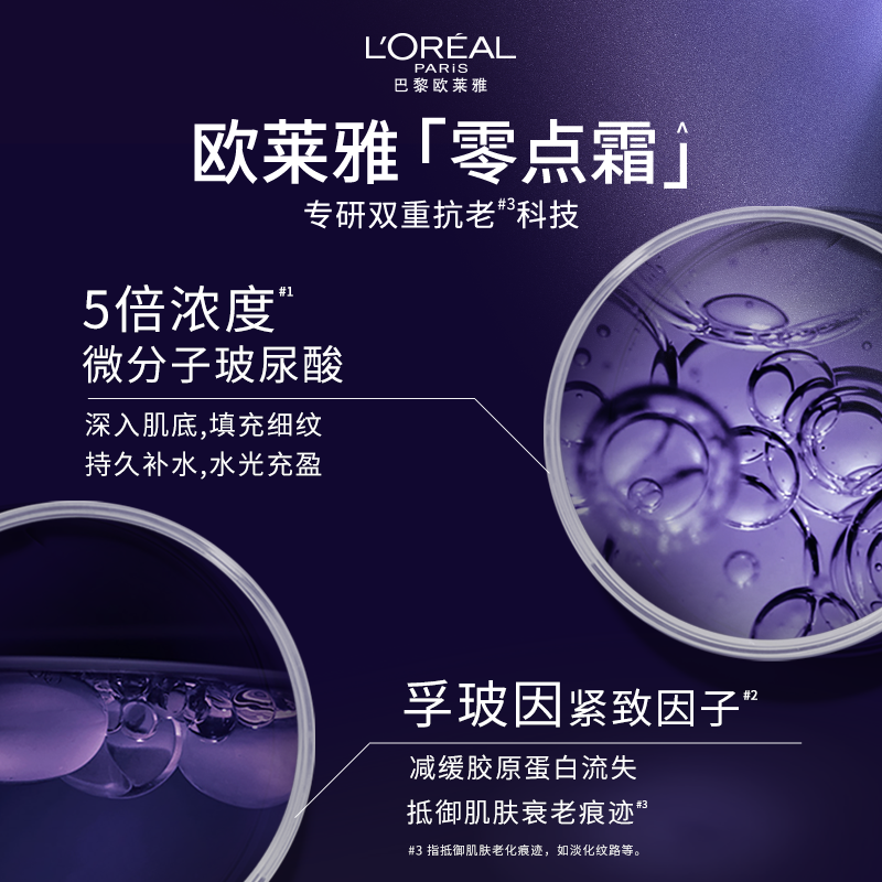 欧莱雅零点霜复颜玻尿酸熬夜面霜紧致修护补水保湿淡化细纹护肤品