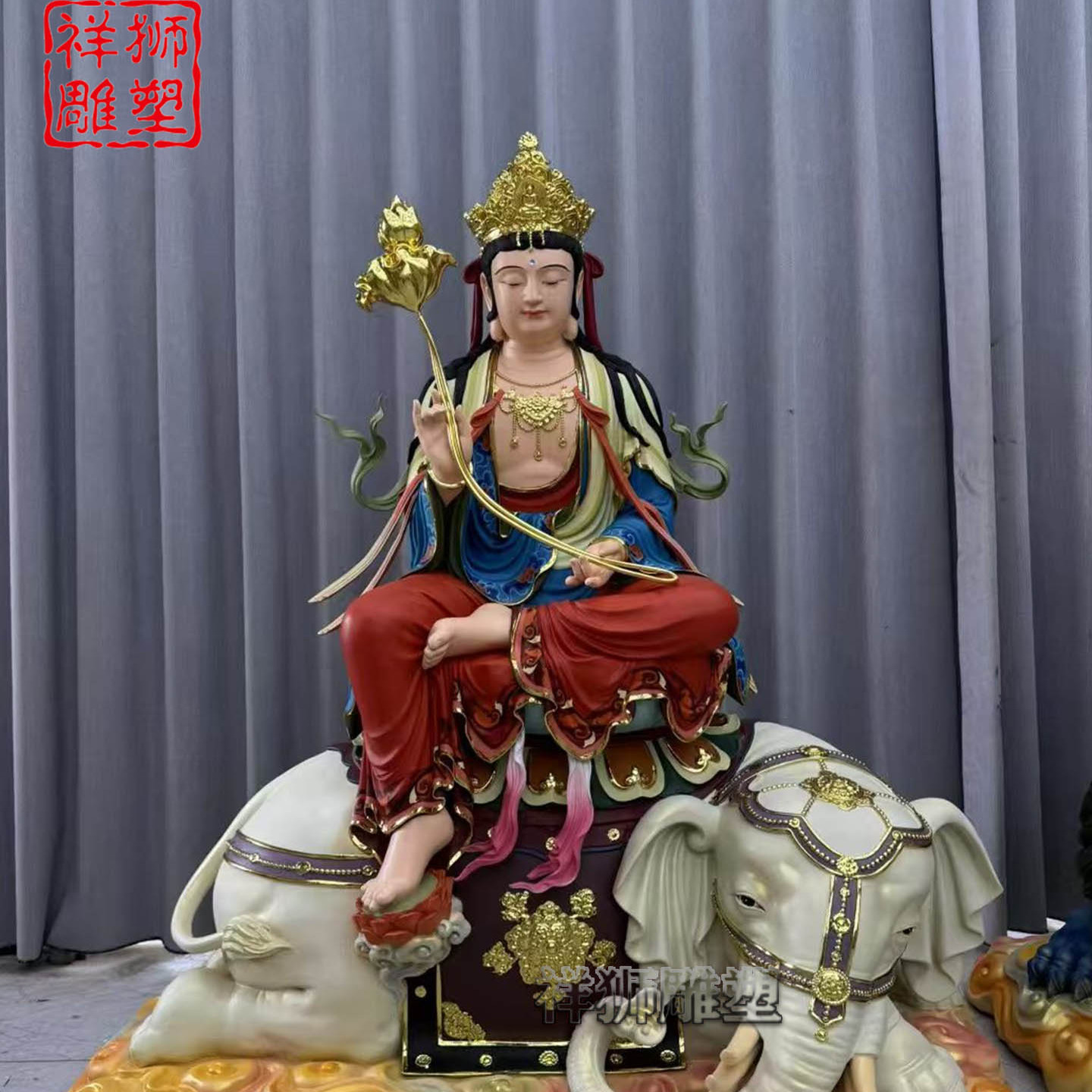 文殊菩萨普贤菩萨青狮文殊白象普贤华严三圣佛像摆件佛堂供奉定制