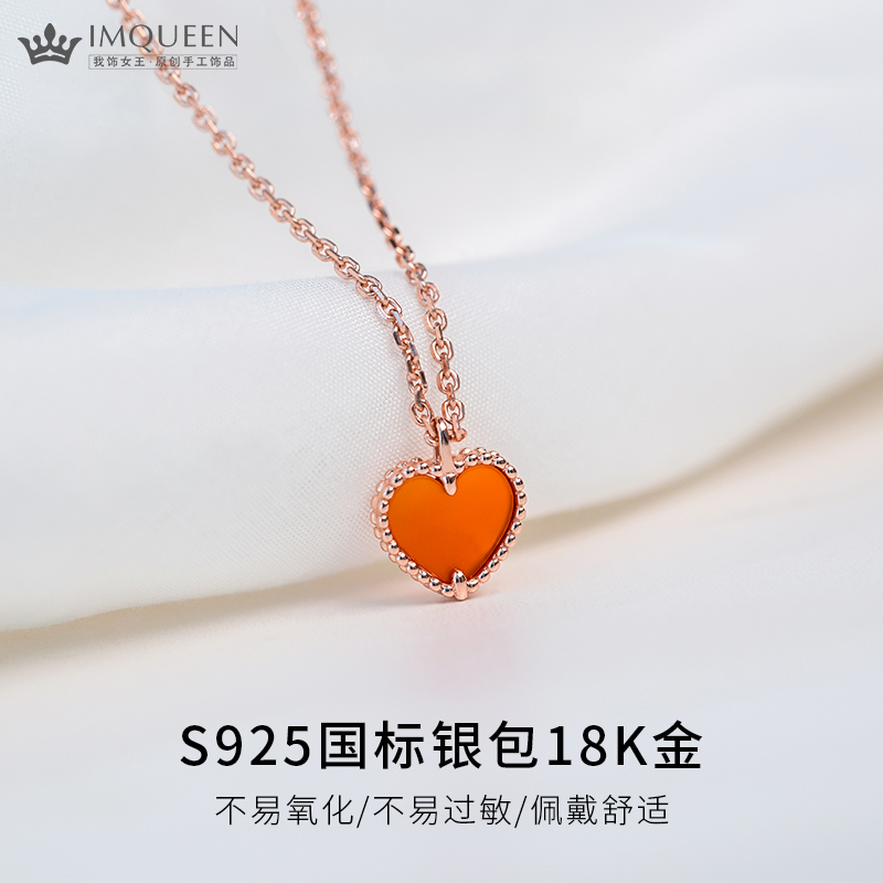 红色爱心形小红心银项链女 纯银锁骨链S925彩金简约百搭气质女生