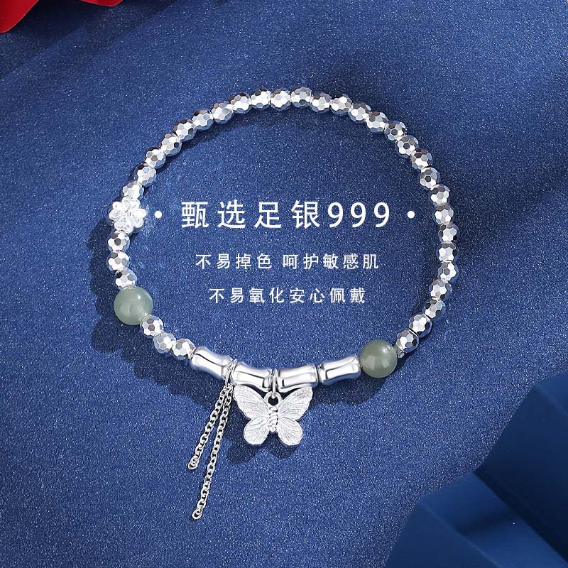 摩天轮和田玉蝴蝶手链女足银小众级感新中式国风饰品热卖