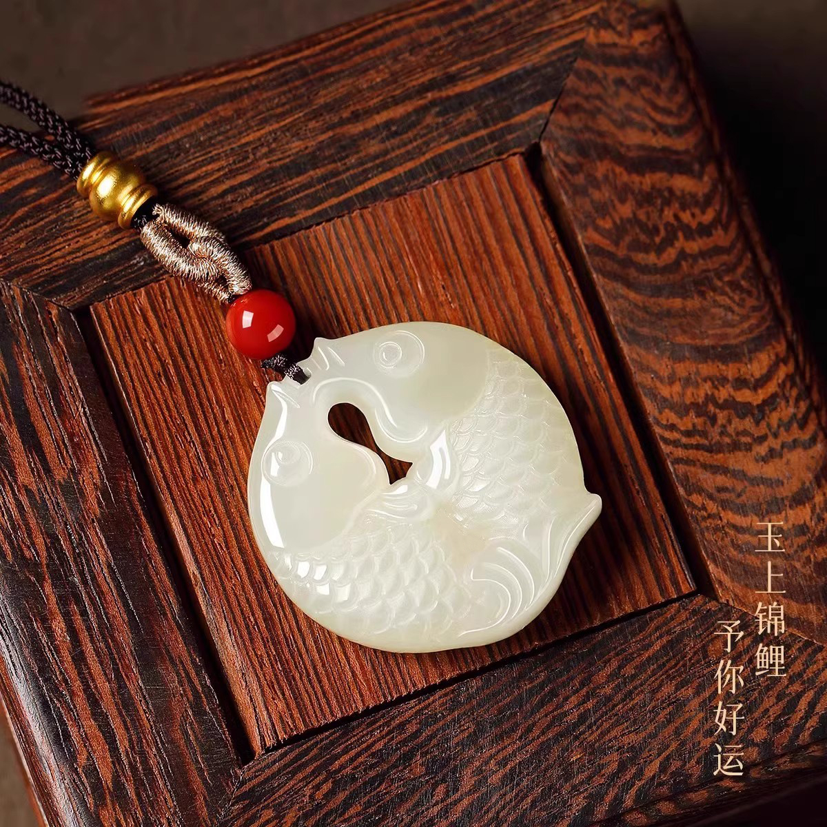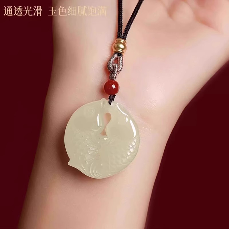 天然和田玉双鱼吊坠女款白玉石玉坠玉佩好运转运上岸锦鲤挂件礼物