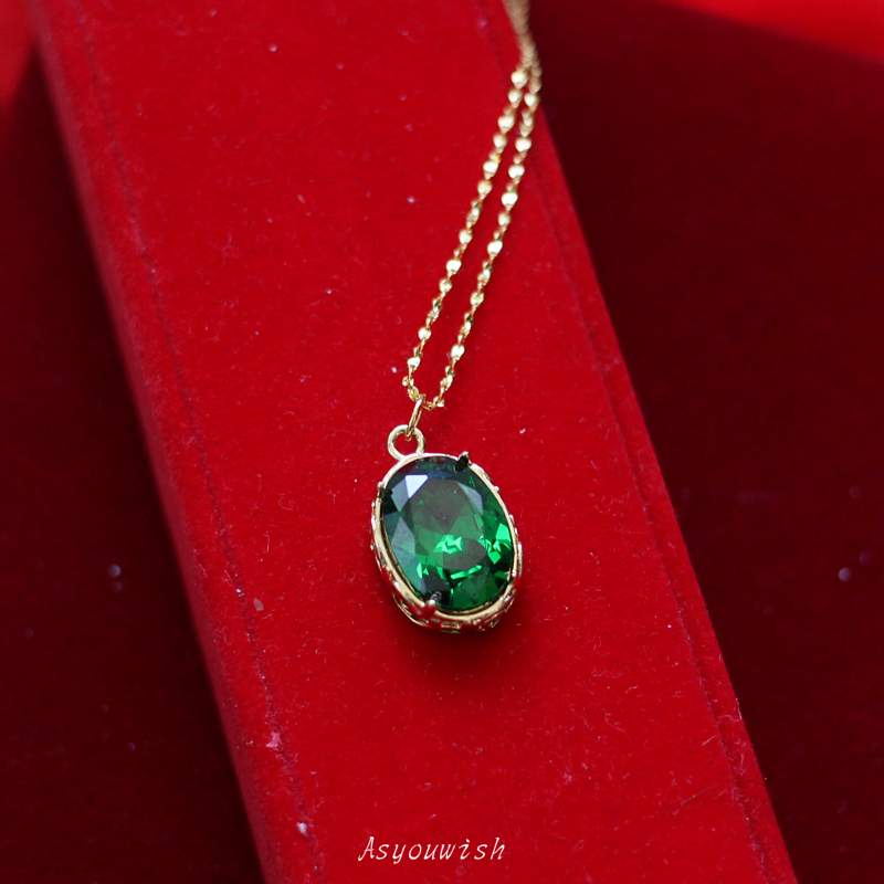 如意|翡冷翠西洋回流复古董祖母绿莱茵石纯银项链收藏vintage戒指