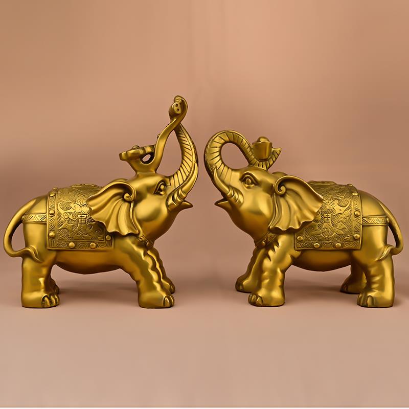 铜大象摆件纯铜元宝如意象吸水象家居办公室桌面礼品大号吉祥福象