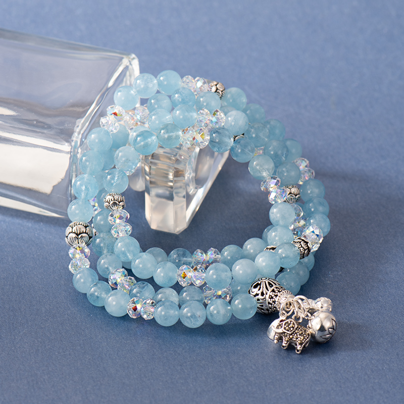 海蓝宝手链女轻奢小众精致925纯银多层转运珠草莓晶手串原创设计