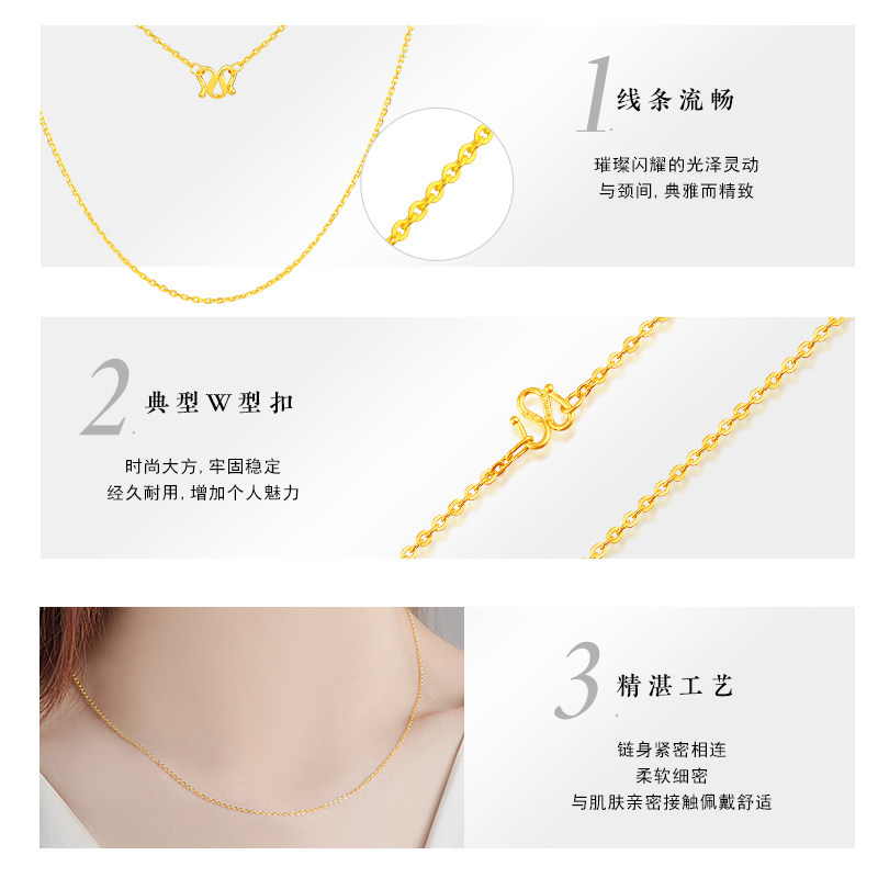 老庙黄金足金项链O字链素链女百搭锁骨链黄金计价女官方正品送礼