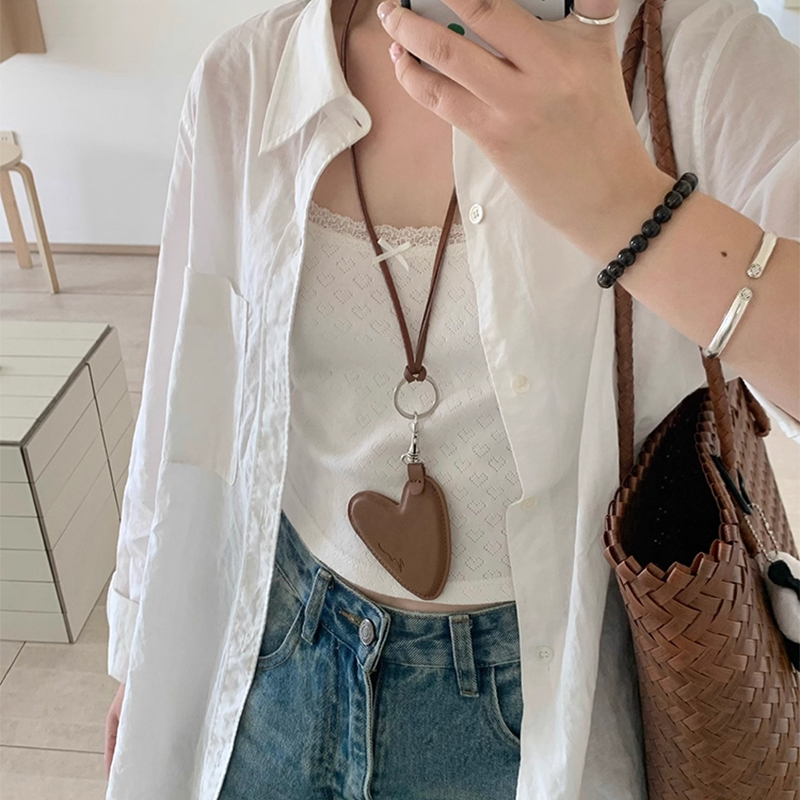 韩系皮质爱心挂绳小包项链韩系可爱秋冬挂脖毛衣链零钱包挂件配饰