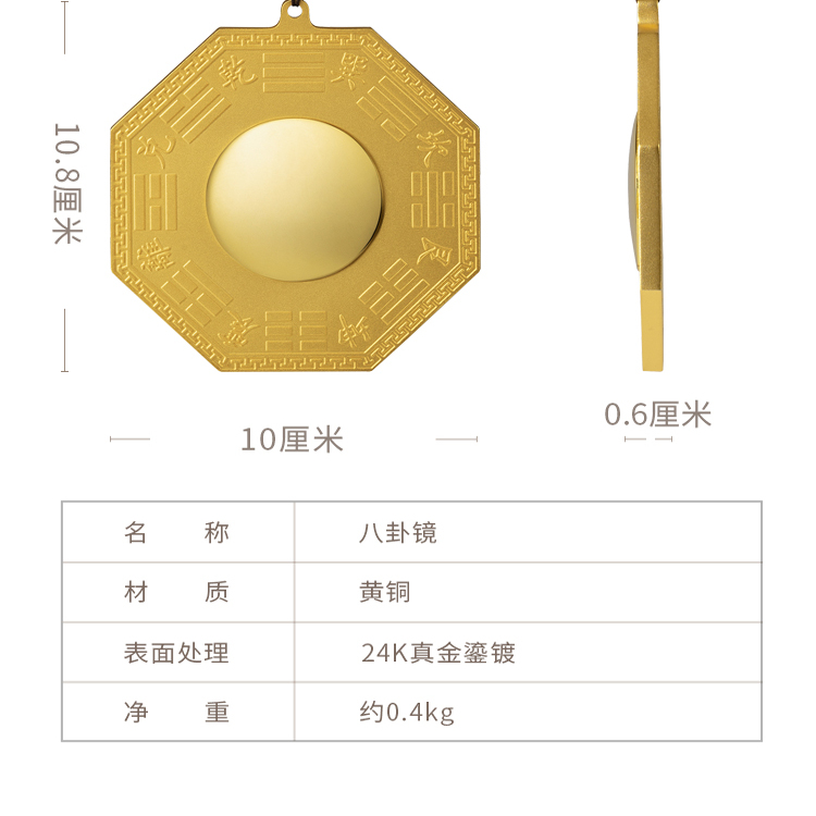 铜师傅 全铜 《八卦镜》太极八卦镜凸八卦镜家用大门口八卦镜摆件