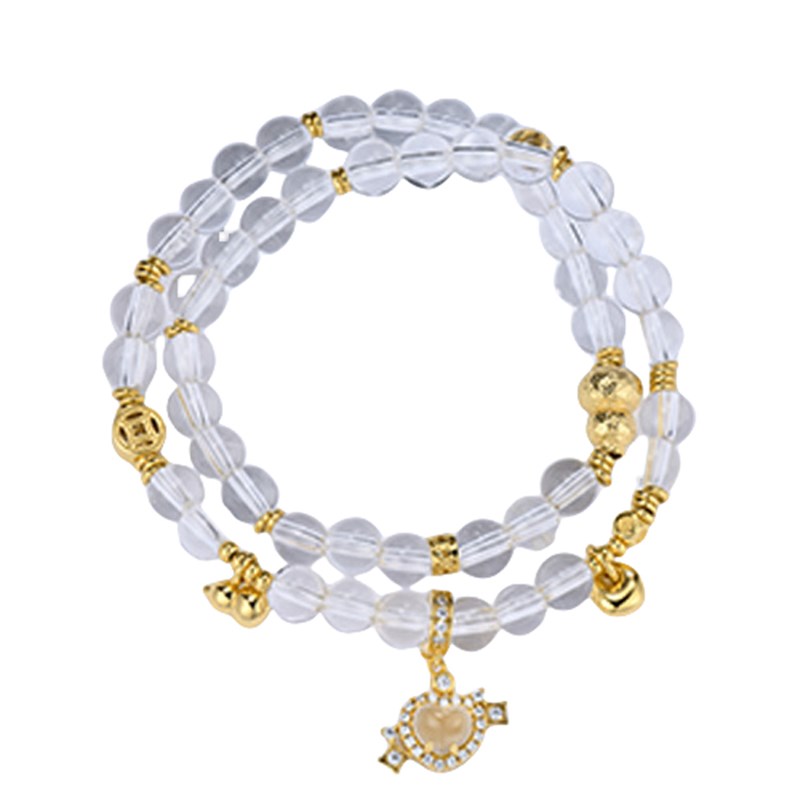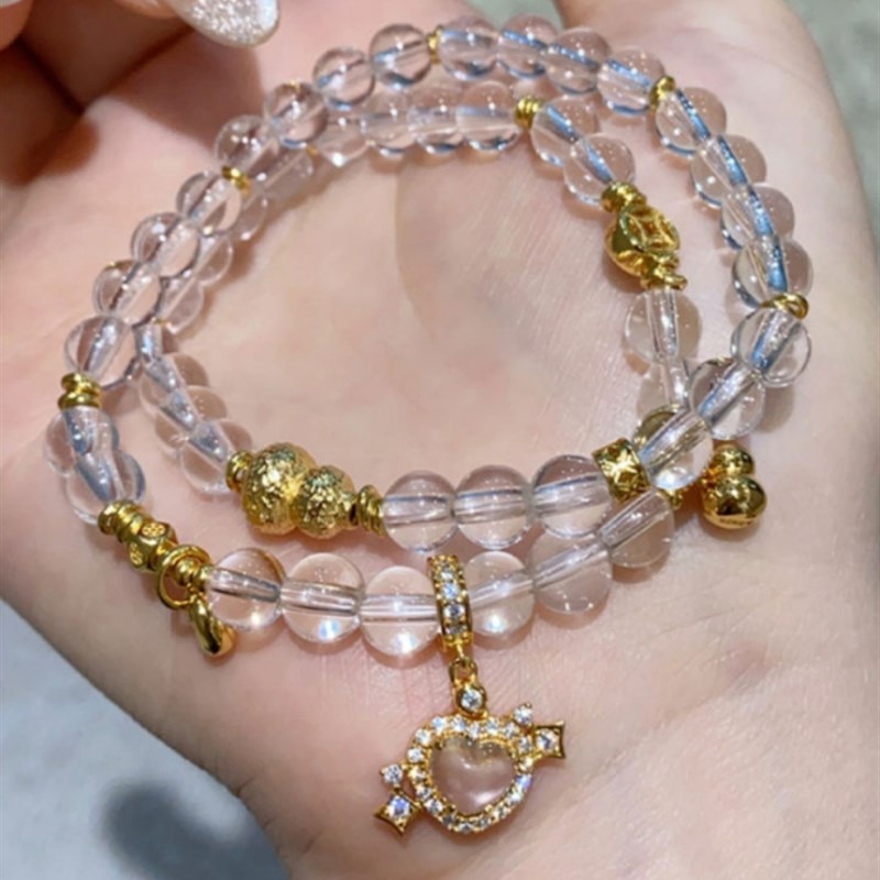 超纯感天然白色水晶双圈珠串手链女子925银多宝心水泡沫玉镯