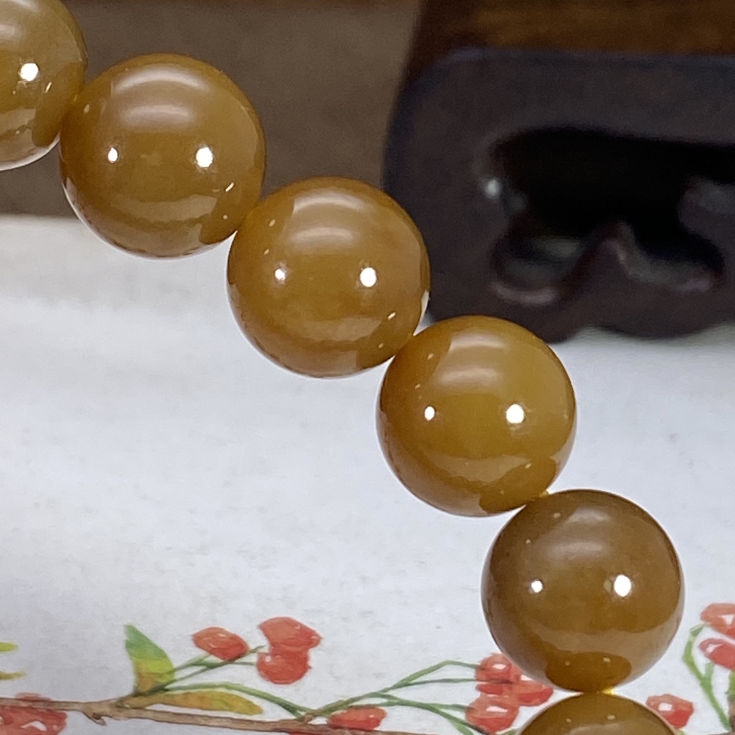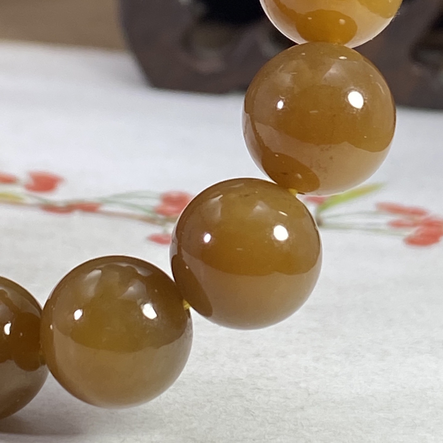 保真正品新疆和田玉籽料且末糖手串12mm圆珠手链油性好满色满肉