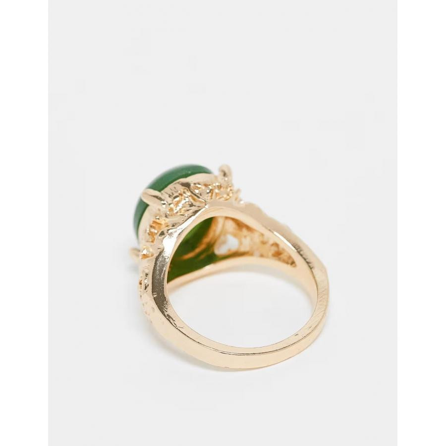 美女当家英国代购金色戒身镶嵌绿色人造宝石时尚感复古中性风指环