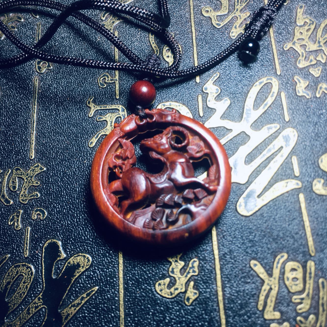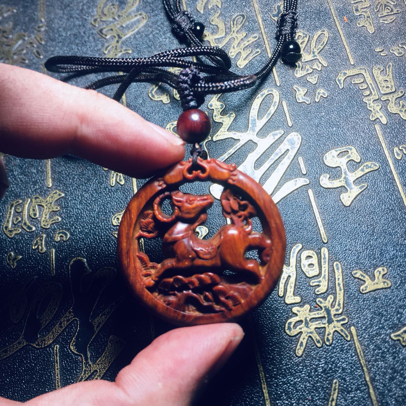 印度小叶紫檀木生肖羊吊坠项链红木挂件木质双面镂空羊虎马兔吊坠