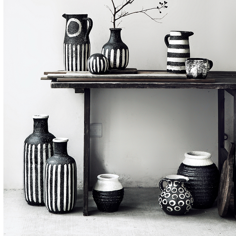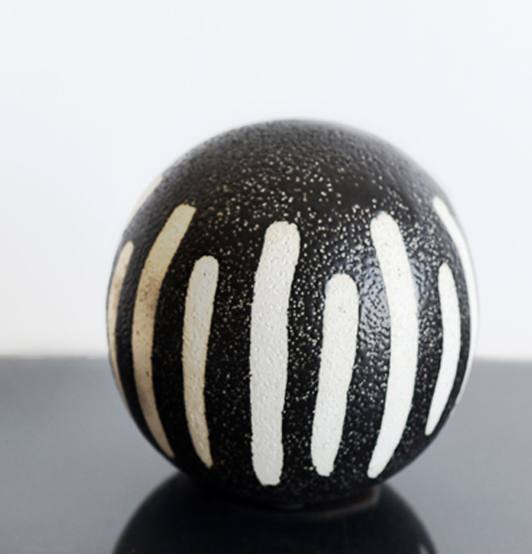 北欧轻奢黑白条纹陶制小球装饰摆件茶几角几创意桌面软装陈设品