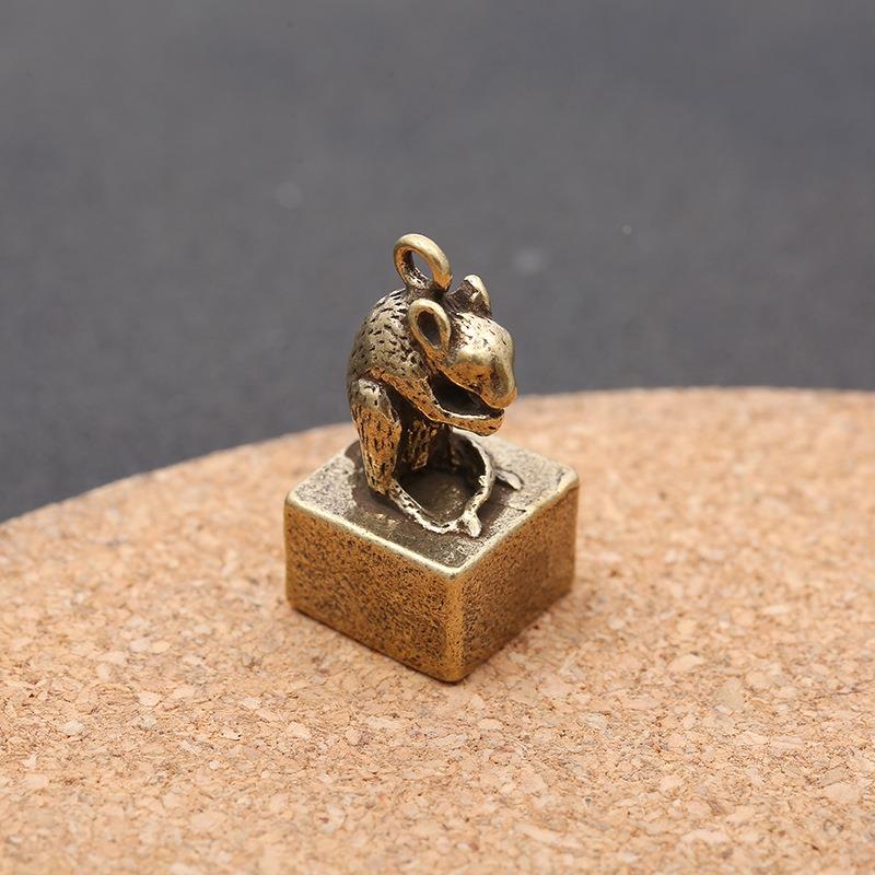 十二生肖印章摆件汽车迷你钥匙扣创意小挂件铜生肖迷你印章定制