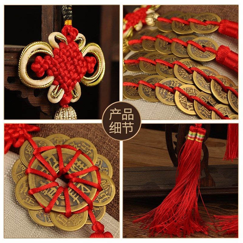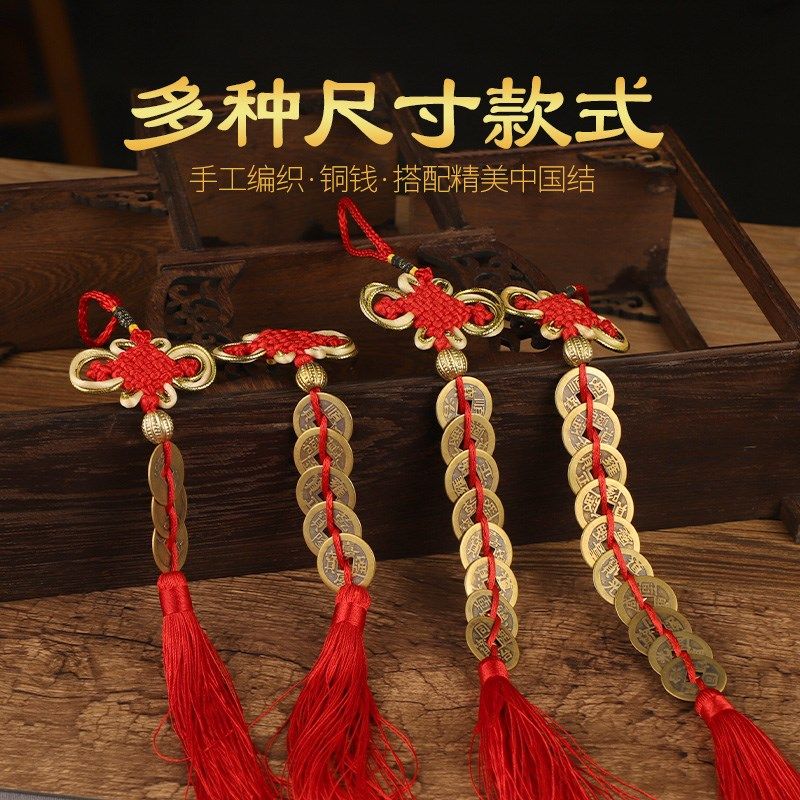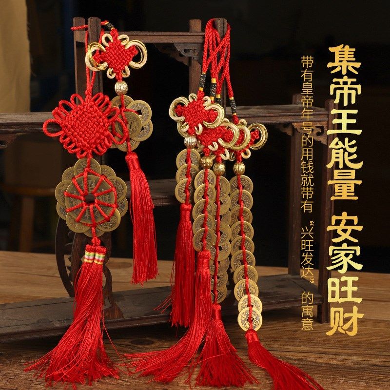 真品五帝钱招财挂件纯黄铜真铜钱古币三六八十帝钱梅花挂饰保平安