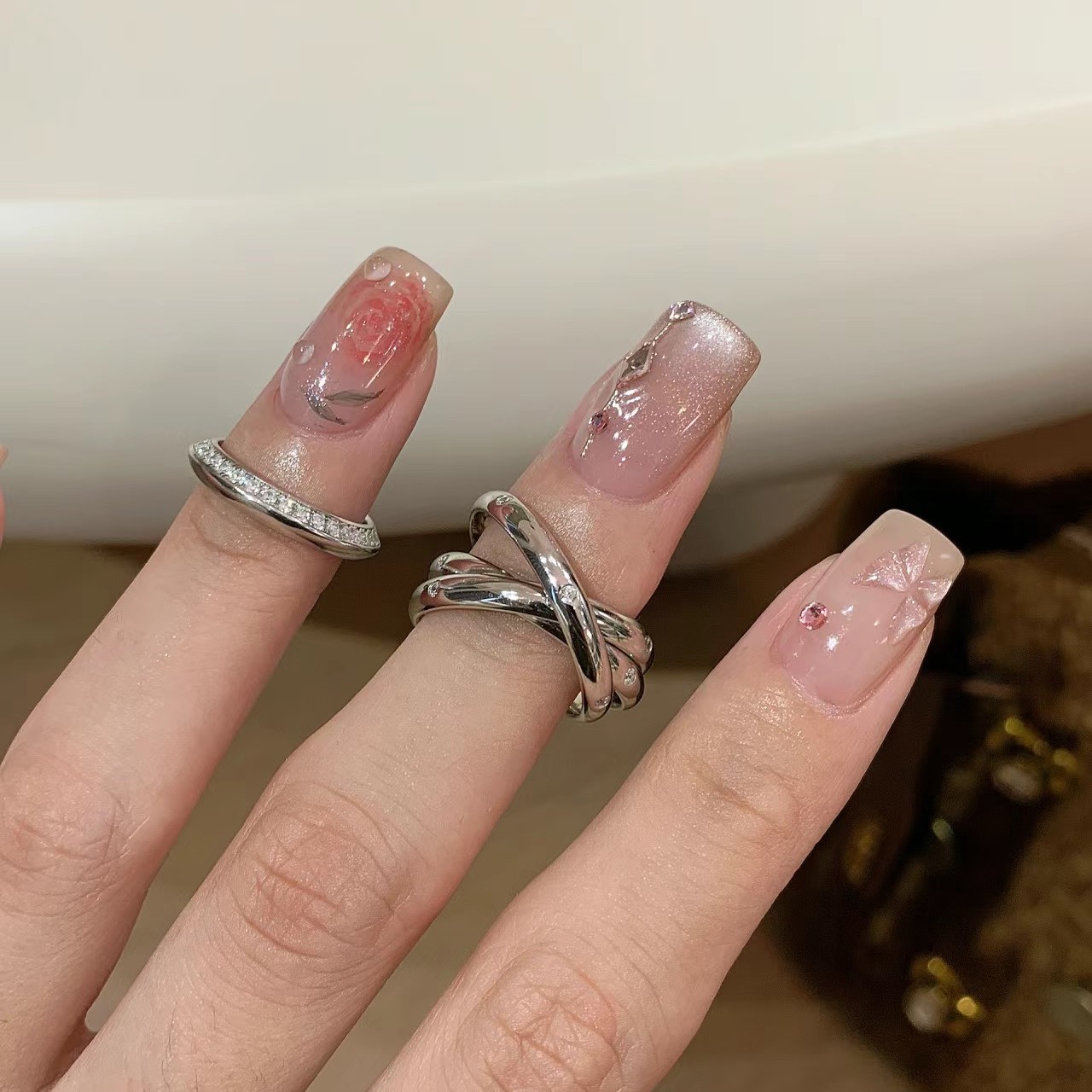 srrmhyn中古三环戒指女小众设计高级感食指戒2024新款潮时尚指环