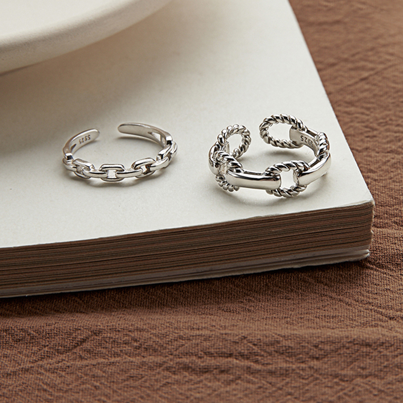 s925复古链条纯银戒指女小众设计高级感食指戒指女时尚个性戒指