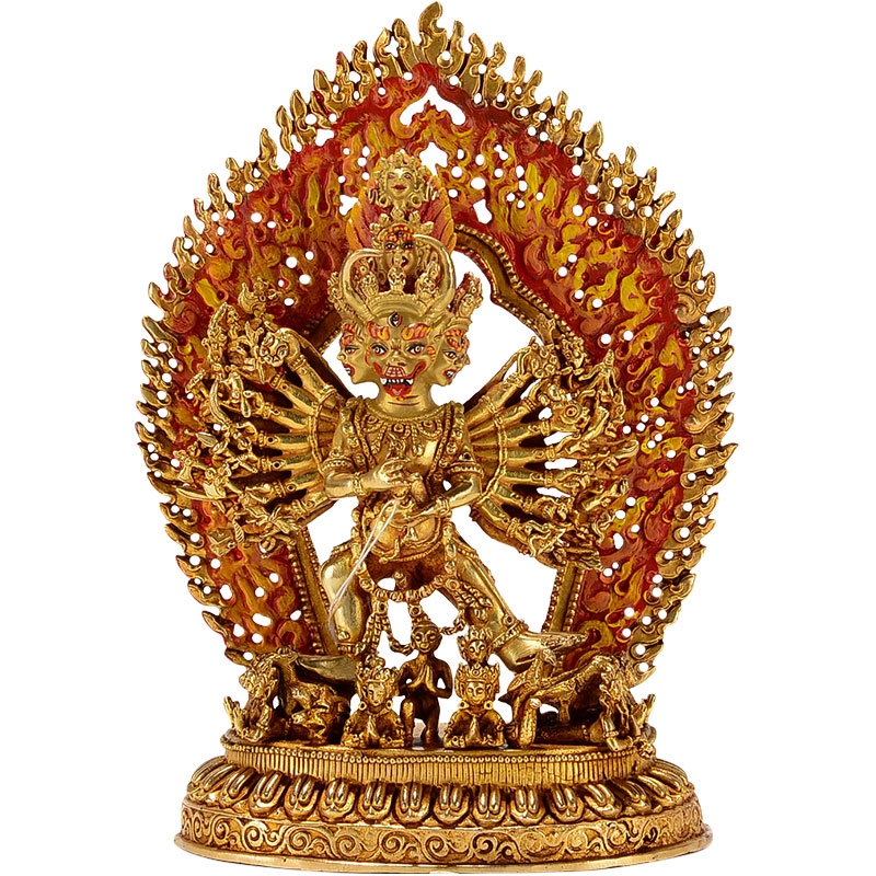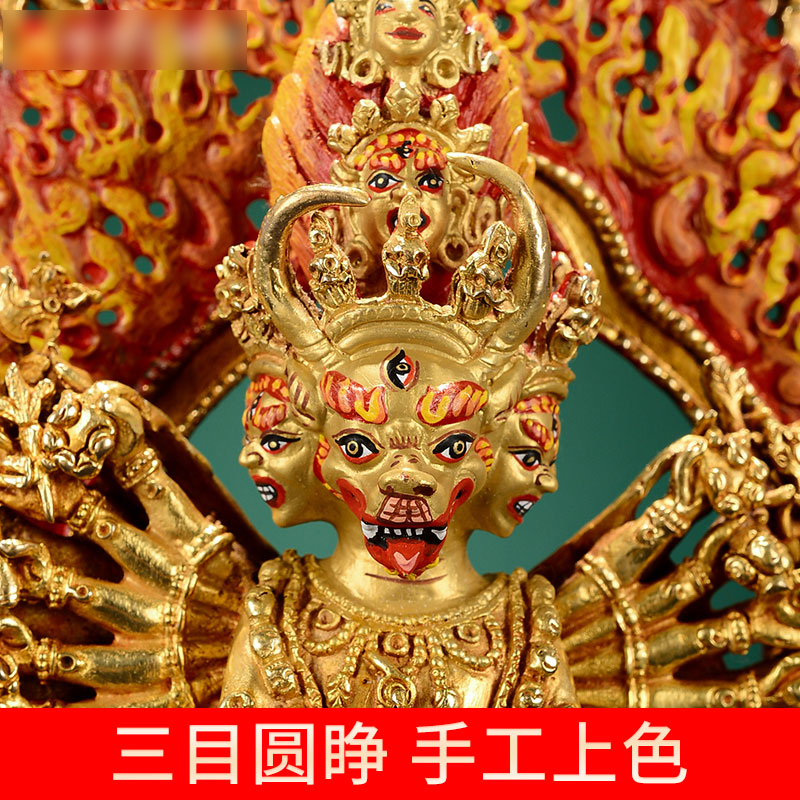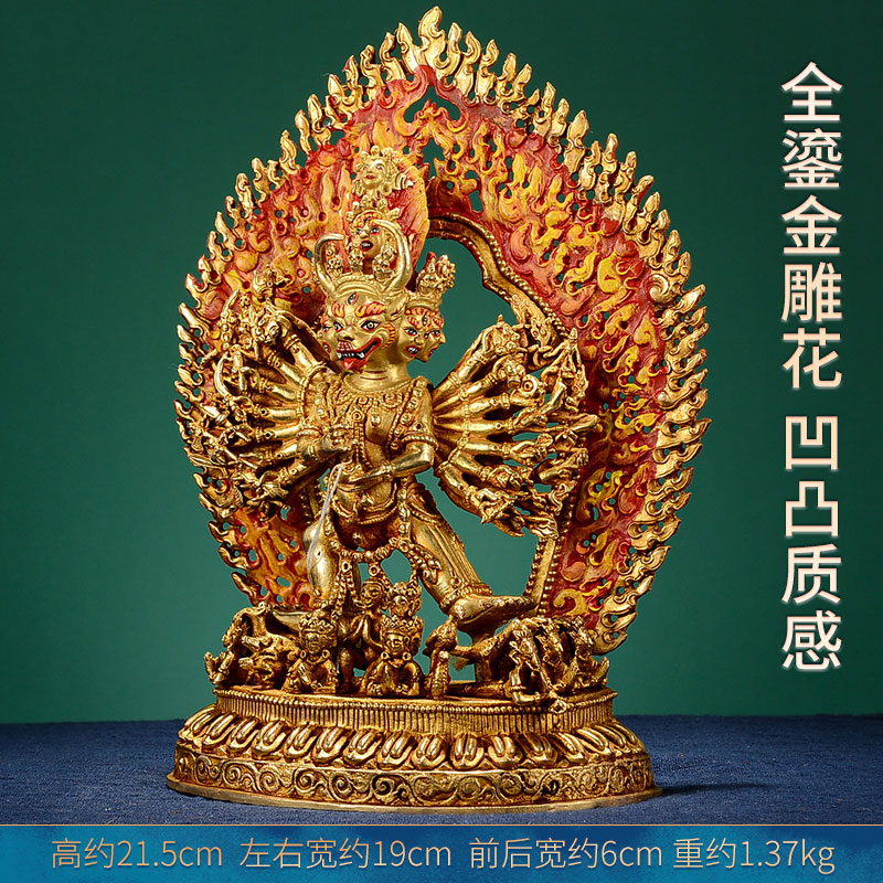 尼泊尔手工大威德金刚全鎏金铜像居家桌面大威德铜像摆件